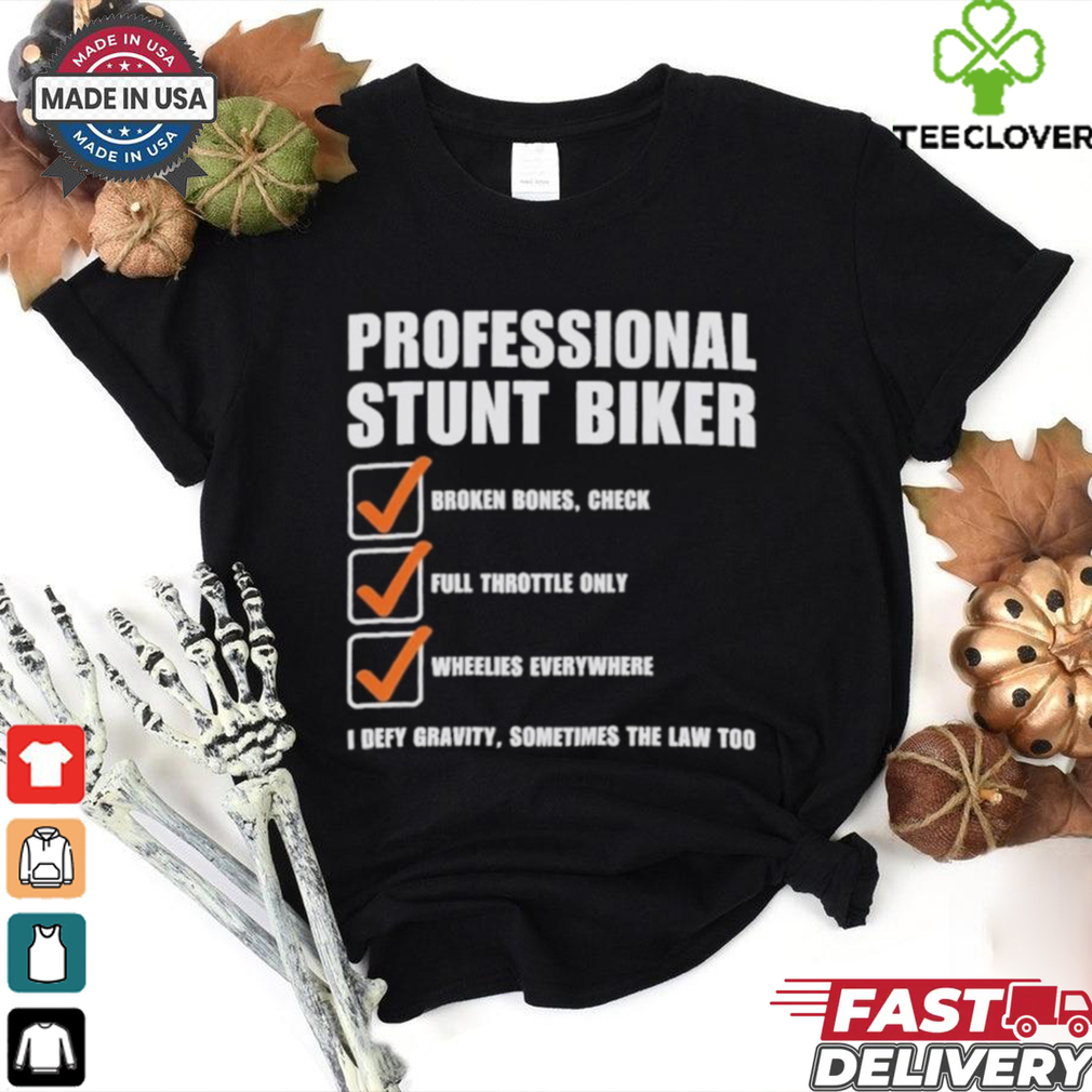 Official Professional Stunt Biker I Defy Gravity, Sometimes The Law Too Shirt