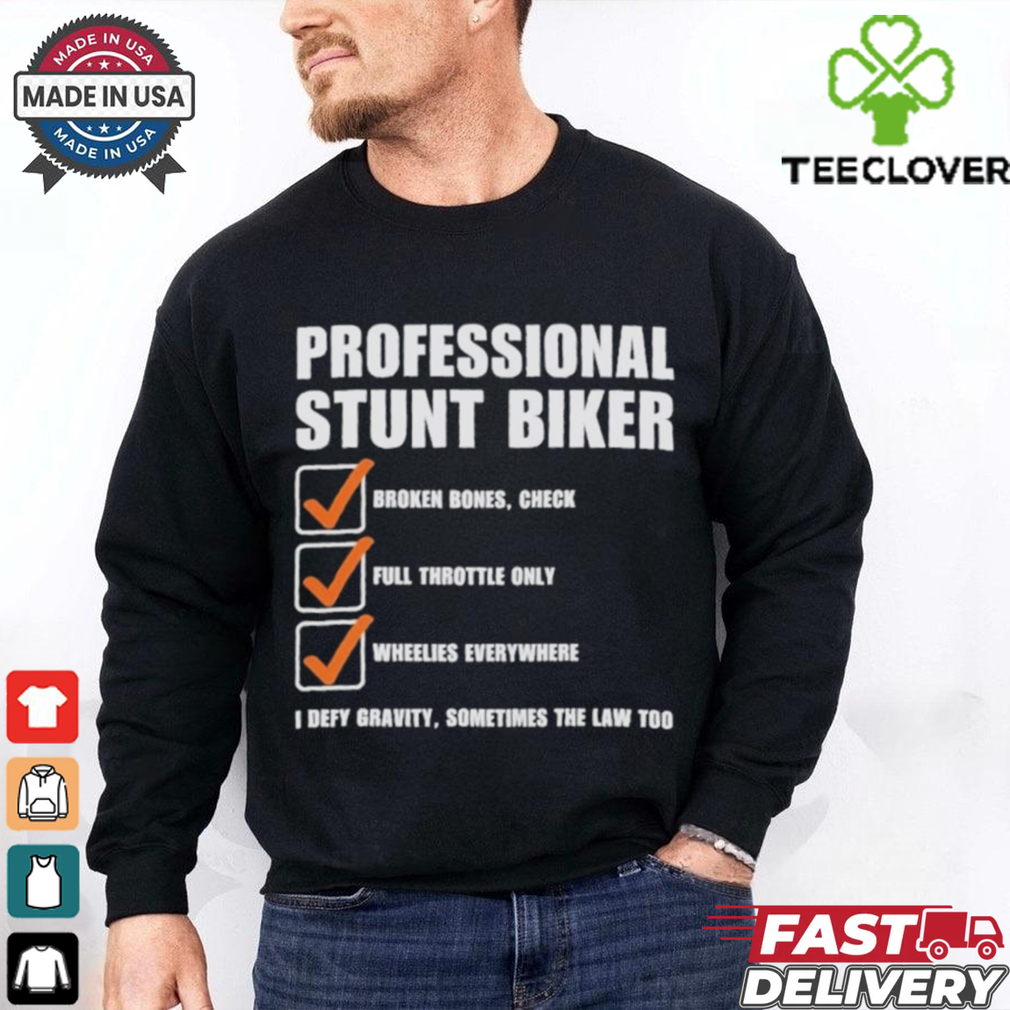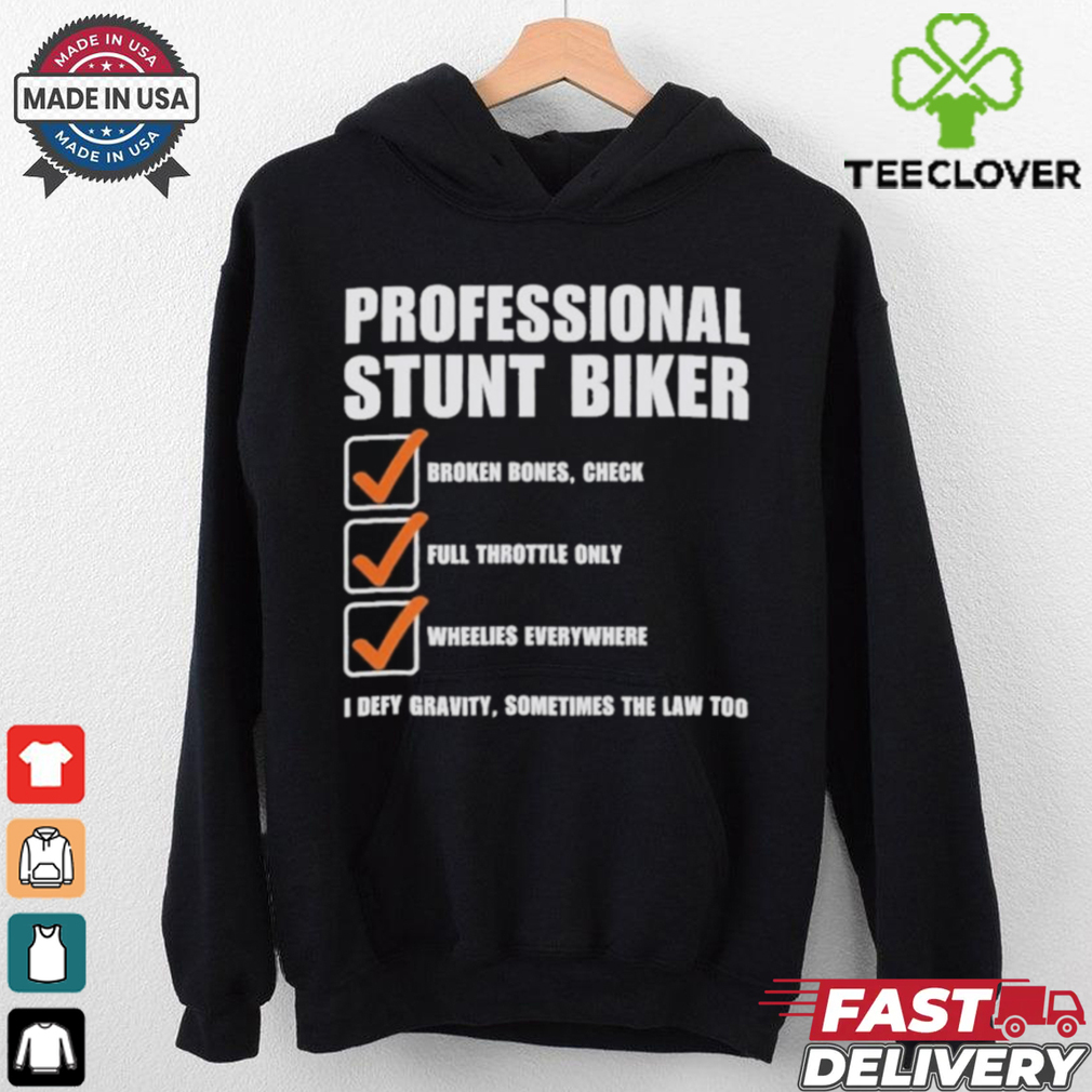 ()Official Professional Stunt Biker I Defy Gravity, Sometimes The Law Too Shirt hoodie, tank top, sweater and long sleeve t-shirt: best style for you