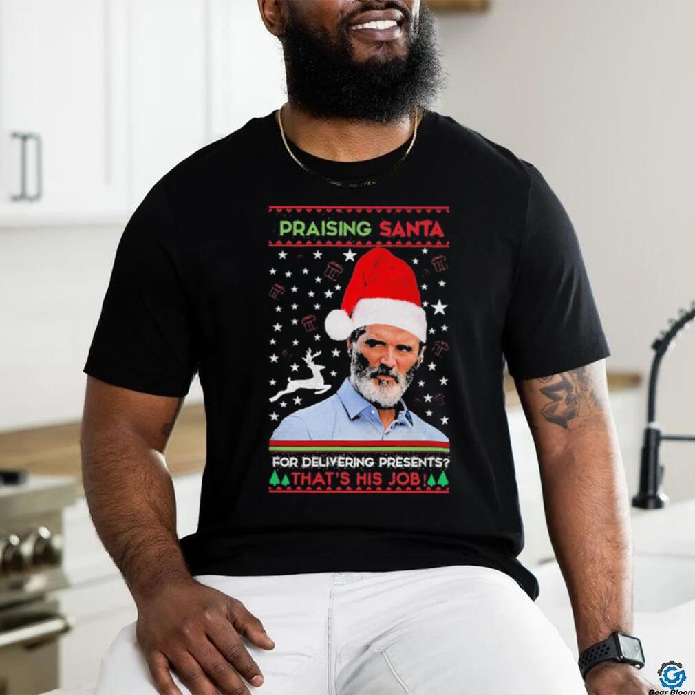 ()Official Roy Keane Praising Santa For Delivering Presents That’s His Job Christmas Ugly Shirt, Hoodie, Sweater, Vneck, Unisex and T-shirt