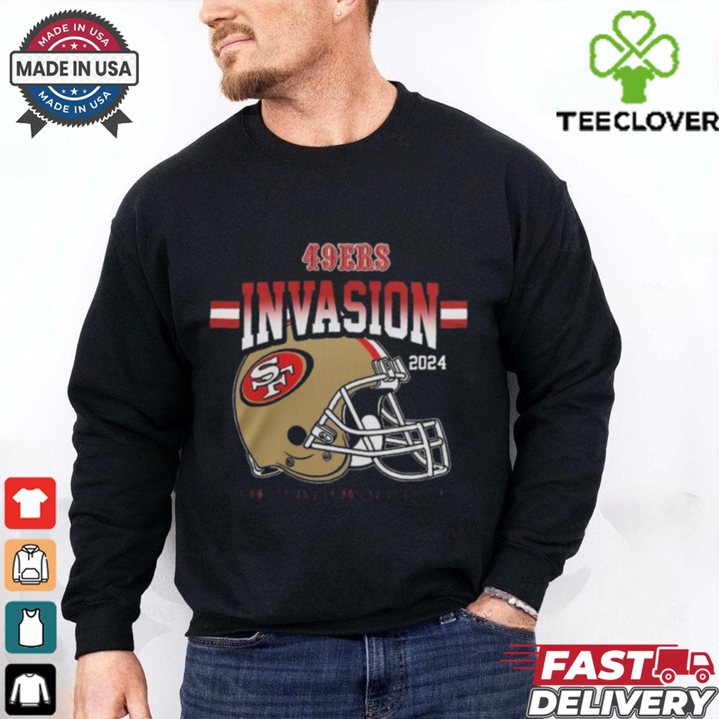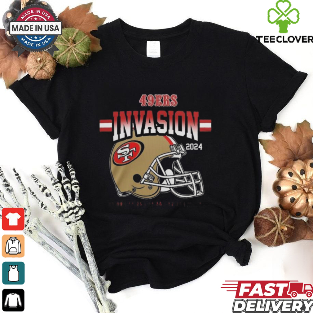 Much more as well as a lot Official San Francisco 49ers Invasion Tour 2024 Shirt well-known T-shirts were actually tailored and also produced throughout the Psychedelic period, consisting of even more as well as extra home-made practices. Band T-shirts came to be an additional exceptionally well-known type of T t-shirt, inexpensively published as well as marketed at real-time jobs as well as gigs of the time, the practice proceeds to the current, band T shirts are actually as well-known as ever before, nonetheless the rate of all of them has actually increased considerably.
