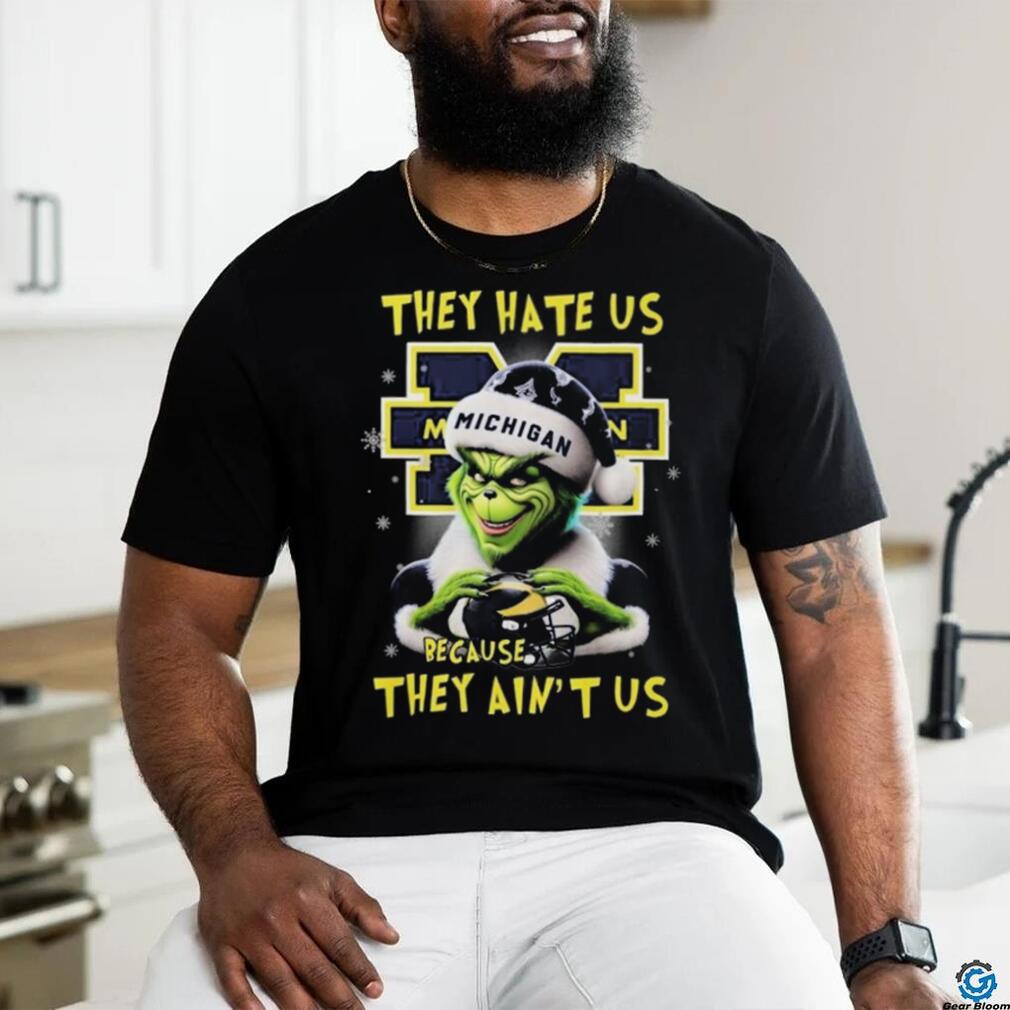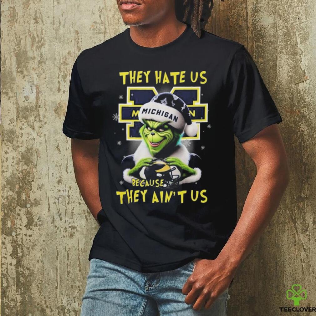 Best Official Santa Grinch They Hate Us Michigan Wolverines Because They Ain’t Us Love Helmet Christmas T Shirt