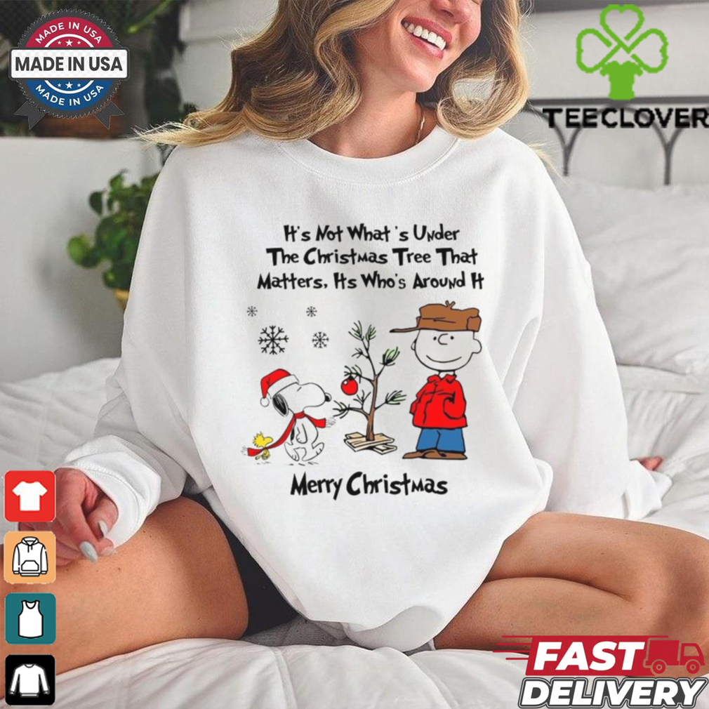 ()Official Snoopy Charlie Brown And Woodstock It’s Not What’s Under The Tree That Matters It’s What’s Around It Merry Christmas 2024 Shirt hoodie, tank top, sweater and long sleeve t-shirt: best style for you