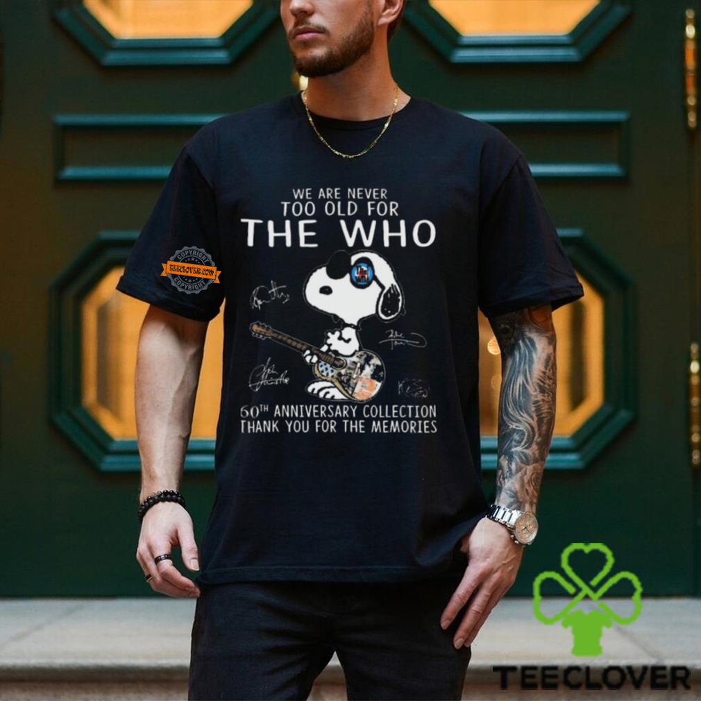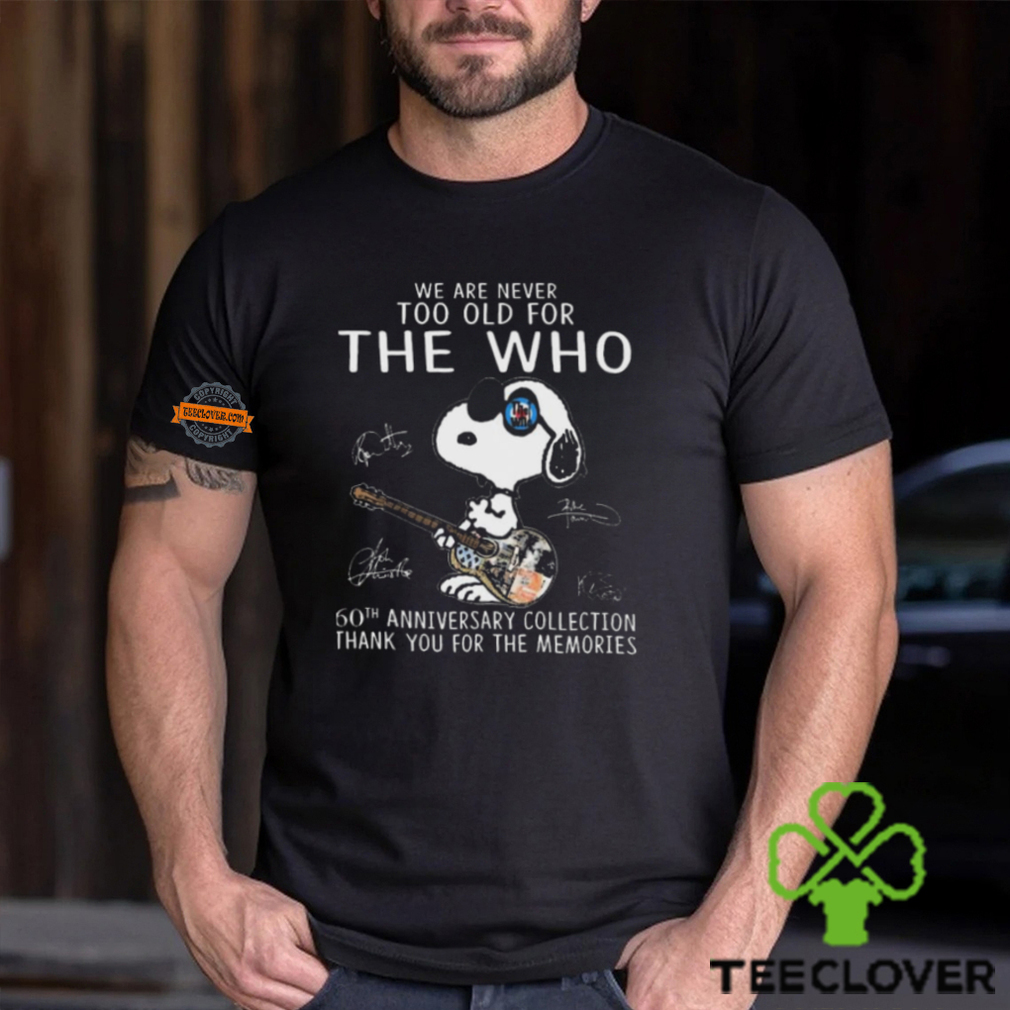 ()Official Snoopy We are never too old for The Who 60th anniversary Collection signatures shirt hoodie, tank top, sweater and long sleeve t-shirt