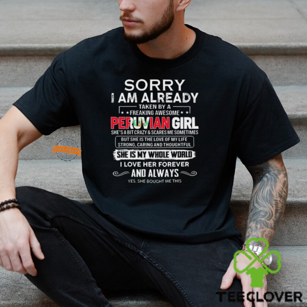 ()Official Sorry I Am Already Taken By A Freaking Awesome Peruvian Girl She’s A Bit Crazy she Bought Me This shirt hoodie, tank top, sweater and long sleeve t-shirt