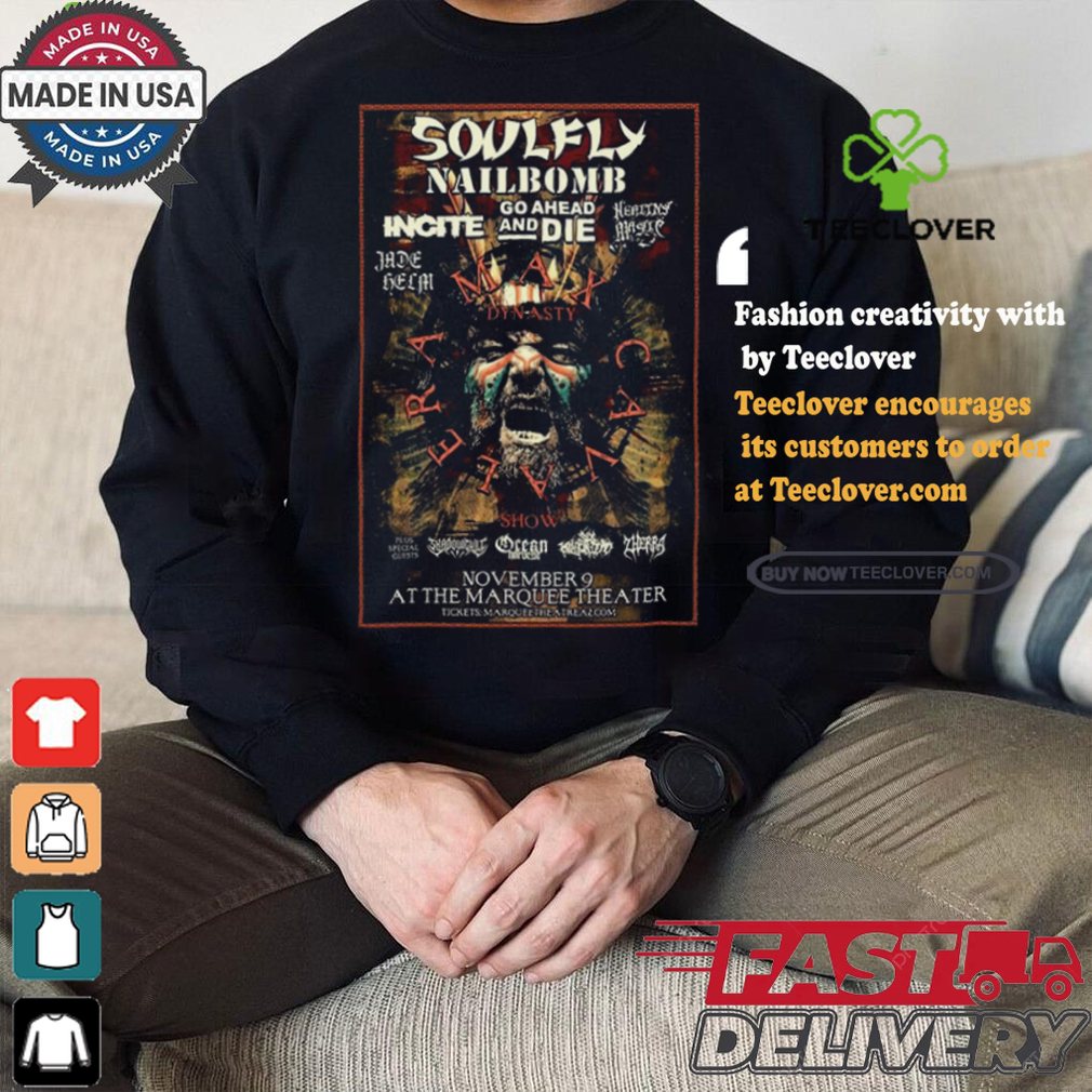 Official Soulfly Nailbomb Go Ahead And Die Incite, At The Marquee Theater, Show November 9 Poster Shirt