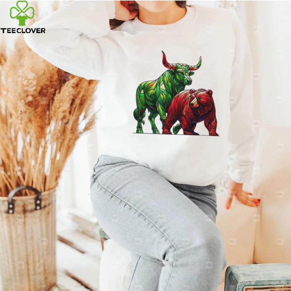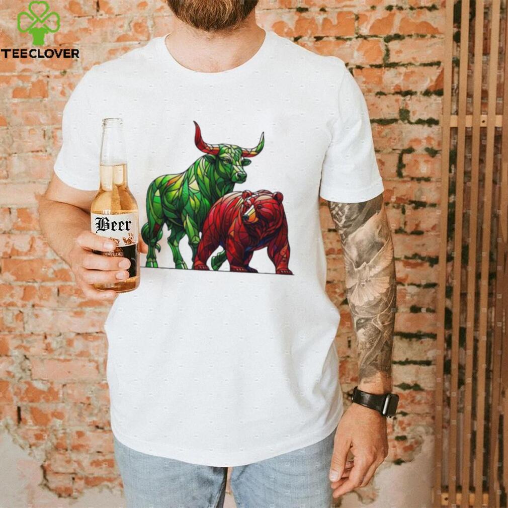The Chrysler Corporation has always been the weakest of the Big 3 US auto makers, and Official Stained Glass Bear And Bull T shirt as another Quora discussion noted, Chrysler’s ability to remain financially viable has been questioned every decade or so from its dawn in 1925 to today as the firm would swing from success to near bankruptcy. In the late 1970s, Chrysler ran into financial difficulties (again) with a portfolio overly reliant on large, gas-guzzling cars; in 1979, the Chrysler Corporation was bailed out by the US government with a $1.5 billion loan, and the company restructured operations to become financially viable by having its major brands – Chrysler, Dodge, and Plymouth – share automobile platform designs. Chrysler brand was the top of the line, and that brand retained a few unique designs not found in the other brands. Dodge was the mainstream brand, while Plymouth became the entry-price brand, simply badge-engineering Dodge or Mitsubishi designs with minimal value-add features. (Ram trucks remained uniquely Dodge products, and the Jeep brand, the remnant of acquiring AMC Motors, focused on SUV designs. AMC’s Eagle brand did not last long either.). The 1980s and 1990s designs, especially K-cars and minivans, helped the Chrysler Corporation regain profitability, but buyers would frequently look at both Plymouth and Dodge offerings at the same time.
