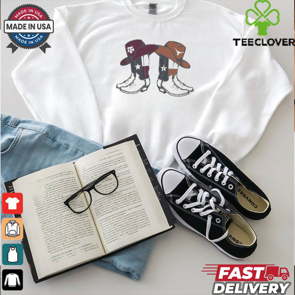 Occasionally I might find some good finds on Mr. Porter or Official Texas A&M Aggies vs. Texas Longhorns 2024 Lone Star Showdown Boot NCAA t shirt clothes on Matchesfashion, otherwise I mostly browse through Farfetch or ssense. In the past I have also found some big discounts on Gucci clothes on Italist, but they charge higher shipping price than other websites so if things are at the same price, it comes down to shipping.If not online shopping, I might just go to rodeo drive, Saks fifth or barneys and try things out before buying and I prefer the experience of walking in the store and buying things to online shopping, just because it all feels more convenient.
