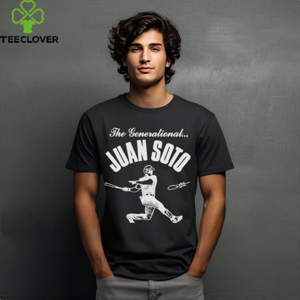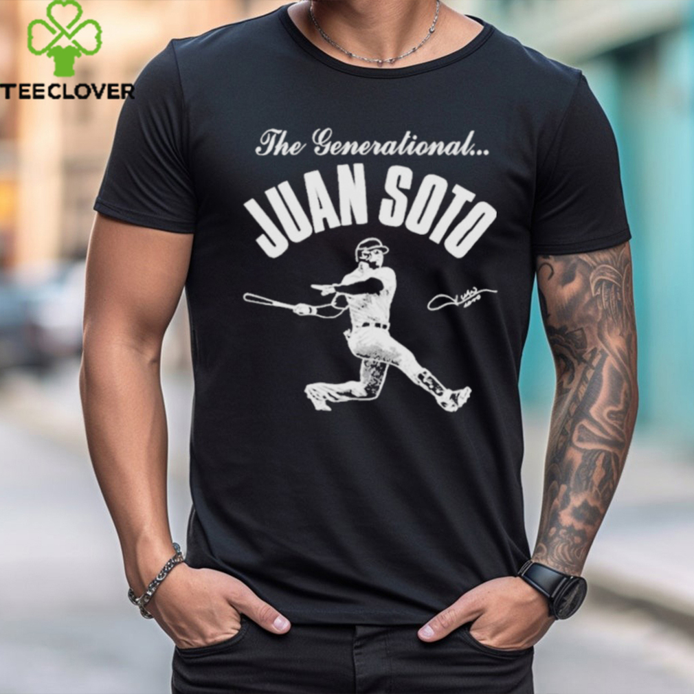 (The Bolshevik) sentinel slowly raised his head. But just at this moment the Official The generational juan soto new york yankees MLB signature shirt body of my friend rose up and blanketed the fire from me and in a twinkling the feet of the sentinel flashed through the air, as my companion had seized him by the throat and swung him clear into the bushes, where both figures disappeared. In a second he re-appeared, flourished the rifle of the Partisan over his head and I heard the dull blow which was followed by an absolute calm. He came back toward me and, confusedly smiling, said: “It is done. God and the Devil! When I was a boy, my mother wanted to make a priest out of me. When I grew up, I became a trained agronome in order. . . to strangle the people and smash their skulls? Revolution is a very stupid thing!” And with anger and disgust he spit and began to smoke his pipe.