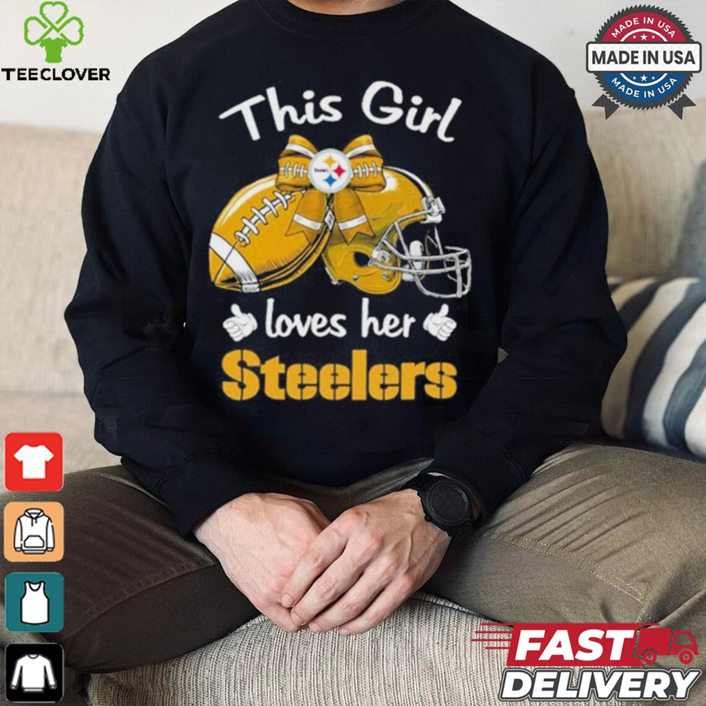 My funny story is when Santa put himself on the naughty list. I travelled the Official This Girl Loves Her Steelers Shirt home from work a few years ago, and I enjoyed all the Christmas lights and decorations every night. One house had a huge blow up Santa on top of the garage, with his arm raised, waving at you when the wind blew. One day I left work early, and it was still daylight. As I turned the corner on this windy day, I saw Santa was a bit deflated. He was slightly bent over and his arm had fallen down so that his hand was between his legs, and the wind was blowing a bit, and he was gently bobbing up and down, up and down, and he seemed to be enjoying himself entirely too much! I was crying with laughter, and I can never look at Santa again without flashbacks.