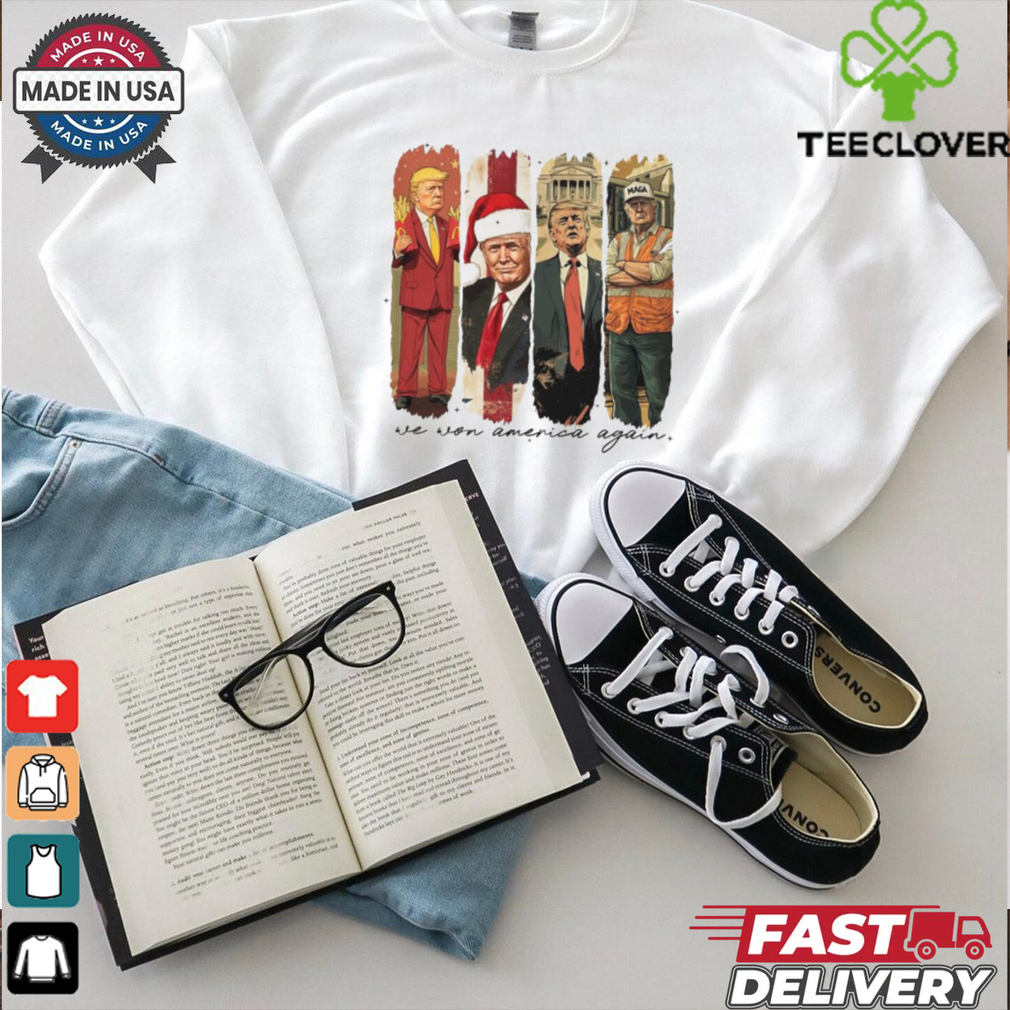 Much more as well as a lot more well-known T-shirts were actually Official Trump Won 2024 We Won America Again 2024 Shirt and also produced throughout the Psychedelic period, consisting of even more as well as extra home-made practices. Band T-shirts came to be an additional exceptionally well-known type of T t-shirt, inexpensively published as well as marketed at real-time jobs as well as gigs of the time, the practice proceeds to the current, band T shirts are actually as well-known as ever before, nonetheless the rate of all of them has actually increased considerably.