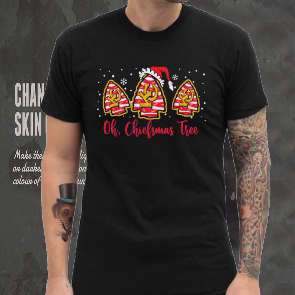 The radio station put out a call for help. We found a Oh Chiefsmas tree Kansas city football 2023 shirt, someones front yard, they were going to give them away, but notify the media so everyone would know about it. I made all of the connections, but the truckers were not familiar with that sections of town, so I told them to follow me. It was still raining I had to drive slowly. This was crazy, I was taking a huge truck of Christmas trees to someones home that I did not know. It was around midnight by the time we took off looking for the place. We arrive and the owner of the house had organized the entire neighborhood into helping. Someone made hot chocolate and coffee. Some on had baked some brownies, someone had got several of the neighbors to start contacting all of the media, someone rolled a bunch of joints. Everyone was in a good mood. There were several thousand trees. We left around 3 AM, got a little sleep, and was back there at 8 AM. What a zoo. There were hundreds of people coming to get their free Christmas trees. The newspaper, radio and TV stations were there covering the free Christmas trees. This went on all day and there were still lots of trees left. We returned the next day, there were even bigger crowds. The media was there again. It was a good Christmas feel good story.
