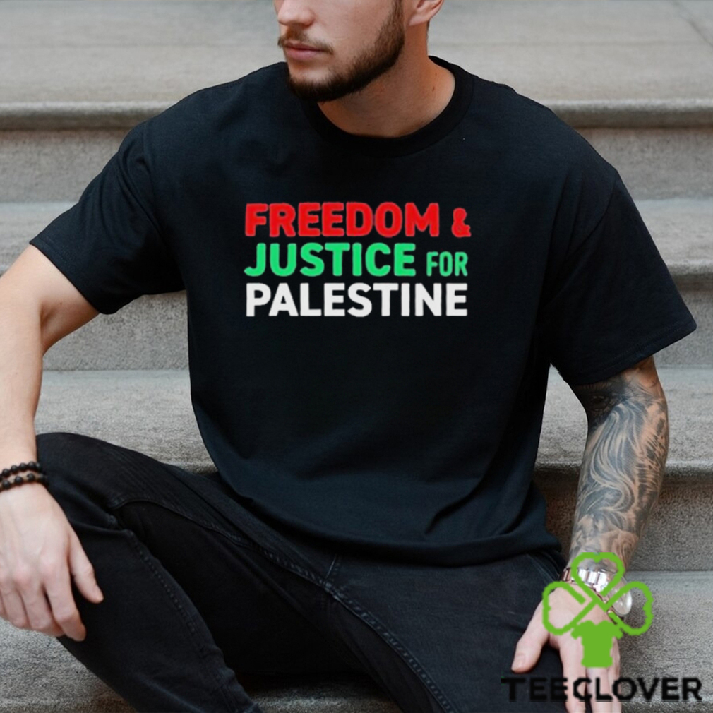 ()Omar sakr wearing freedom& justice for palestine T shirt hoodie, tank top, sweater and long sleeve t-shirt
