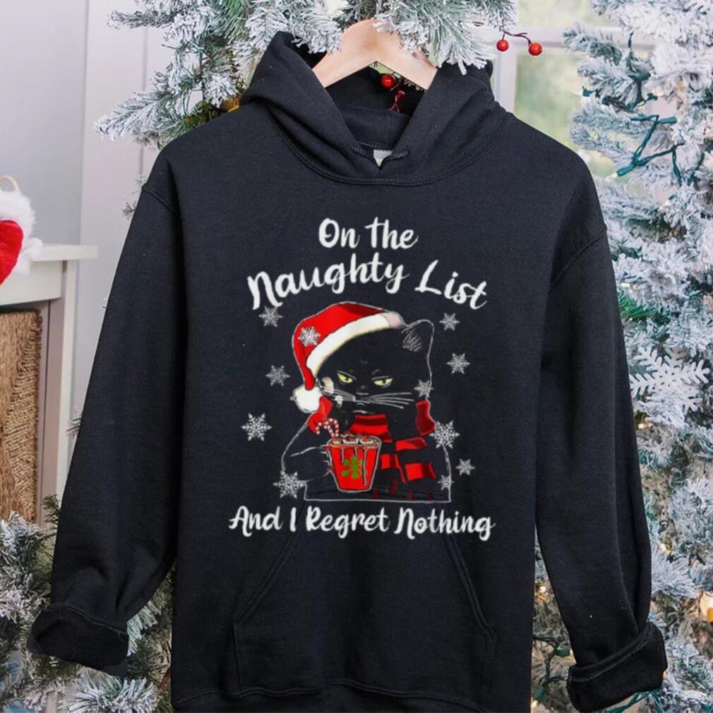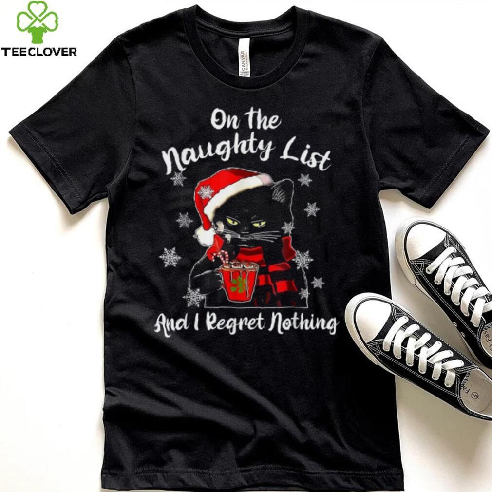 ()On The Naughty List And I Regret Nothing Black Cat Christmas Shirt