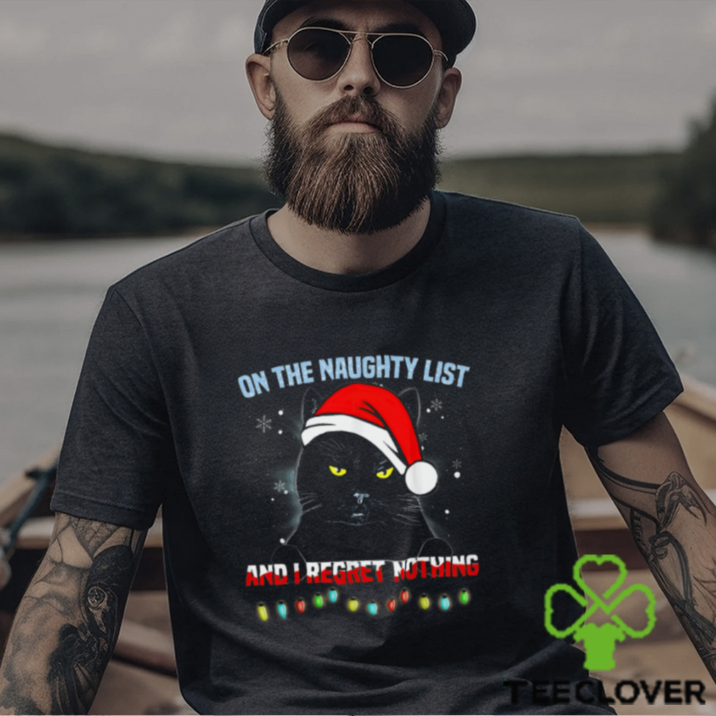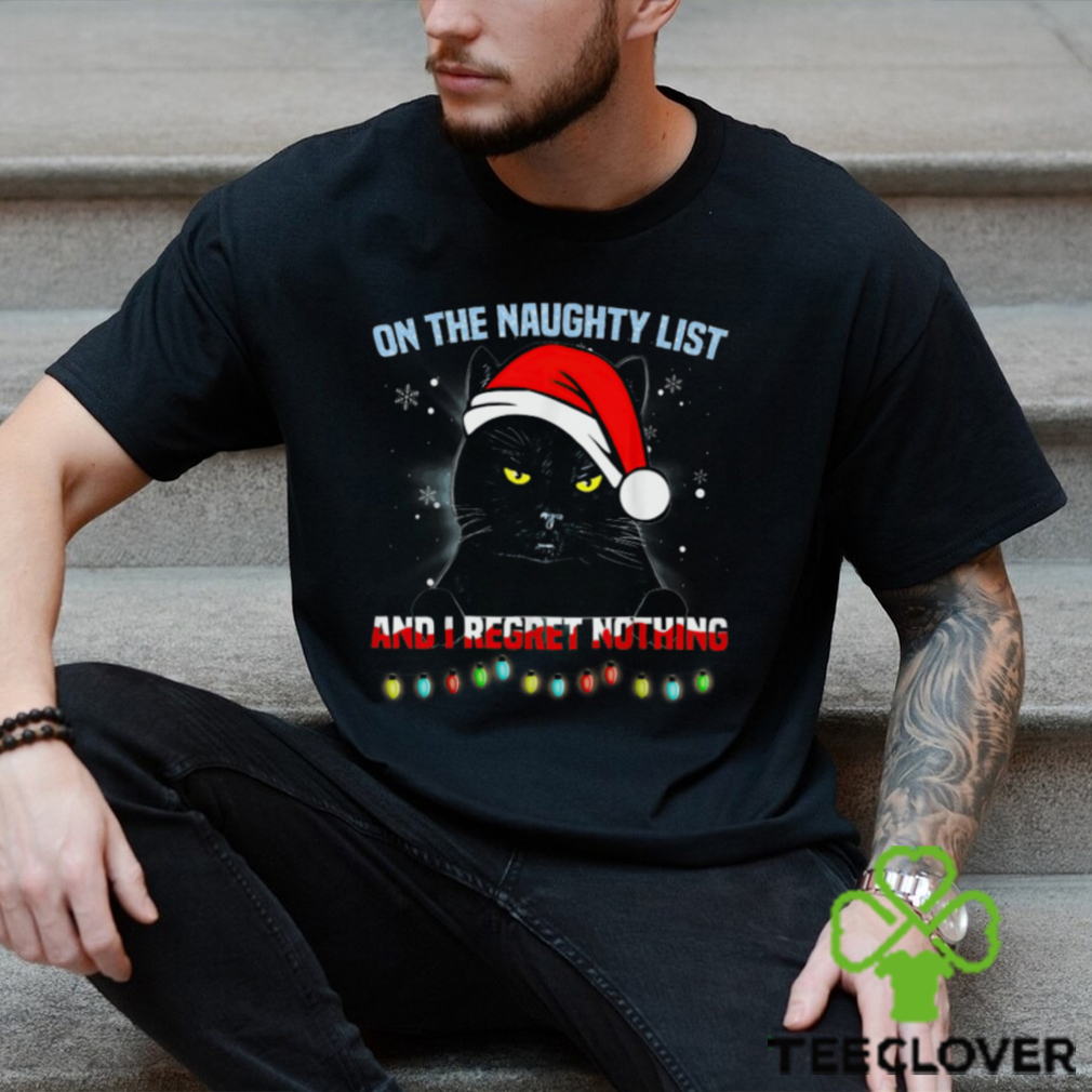 ()On The Naughty List I Regret Nothing Funny Christmas Black Cat Classic T Shirt hoodie, tank top, sweater and long sleeve t-shirt
