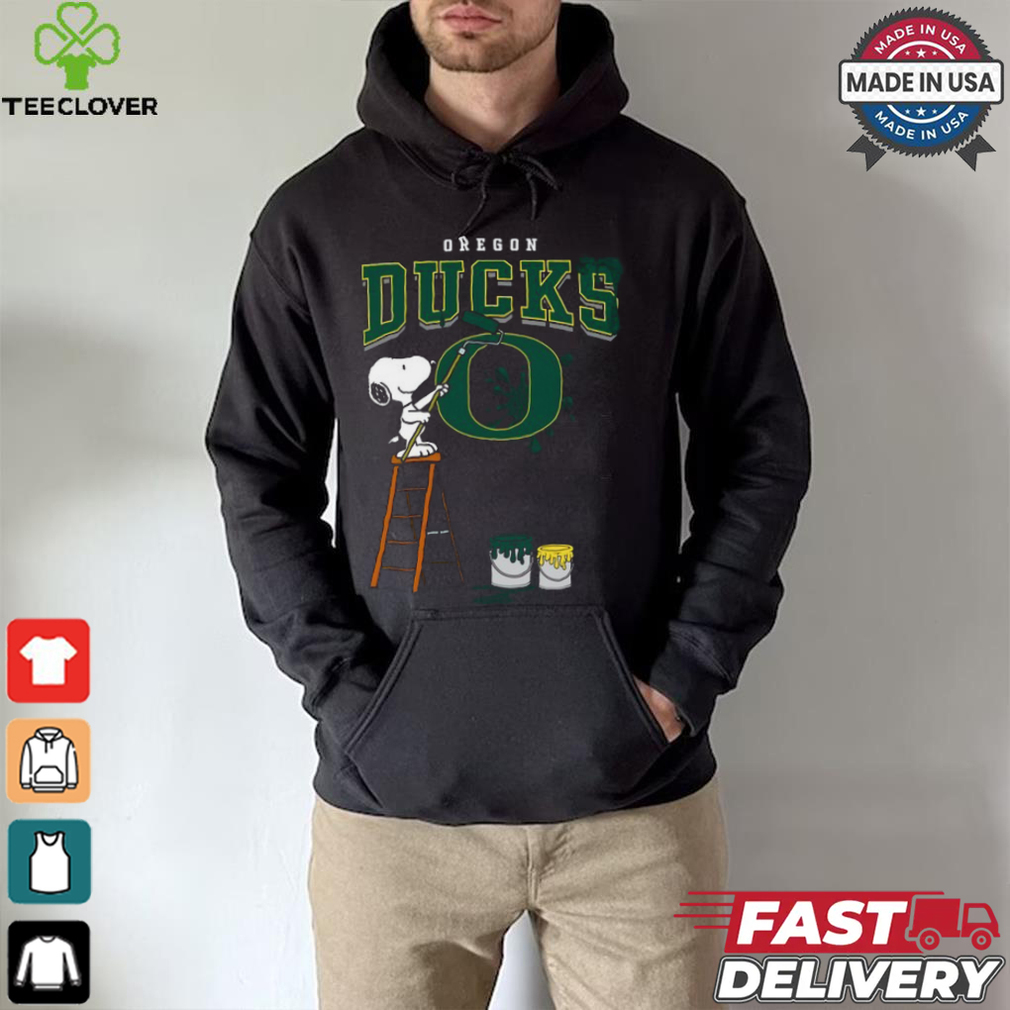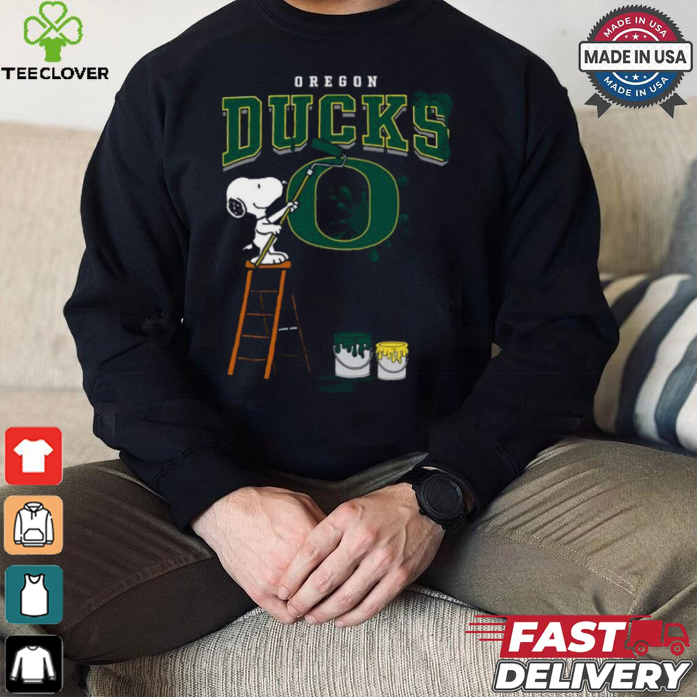 In terms of skills it depends what position they are moving from and to, but I think a season of training with a pro side and some regional amateur rugby games in the lower leagues followed by 1-2 seasons playing below the top flight would be required, if they had the right attributes to reach the top flight. It could be 2 years in total for a winger, or 4 for a more involved position with higher technical and tactical requirements. A player with exceptional physical attributes like being able to run a sub-11 second 100m at 275lbs and a lethal side-step or being fit at 300lbs and immensely strong and Oregon Ducks Snoopy Painting Shirt explosive might make it earlier as their attacking threat with the ball in hand would do more to cancel out their shortcomings than a more physcially average player.