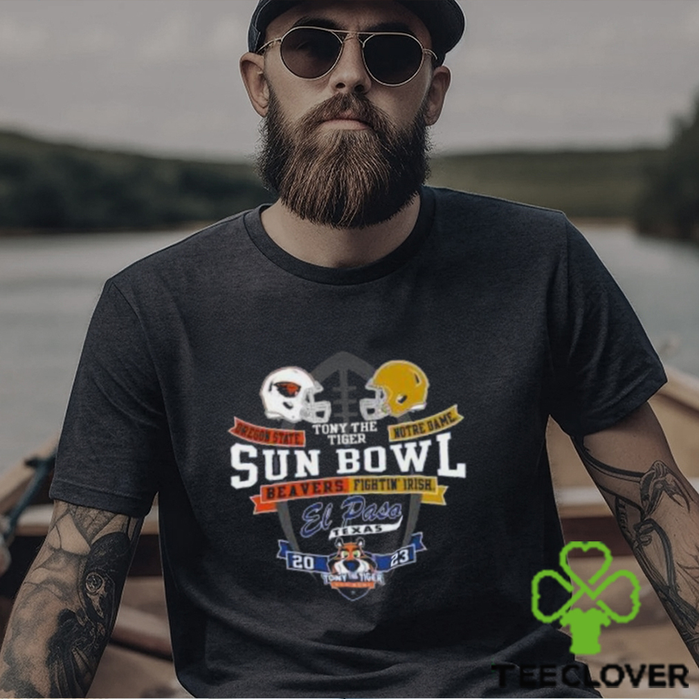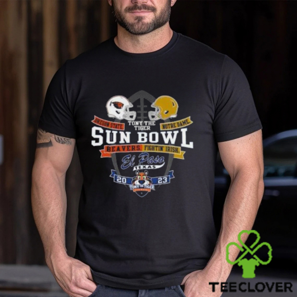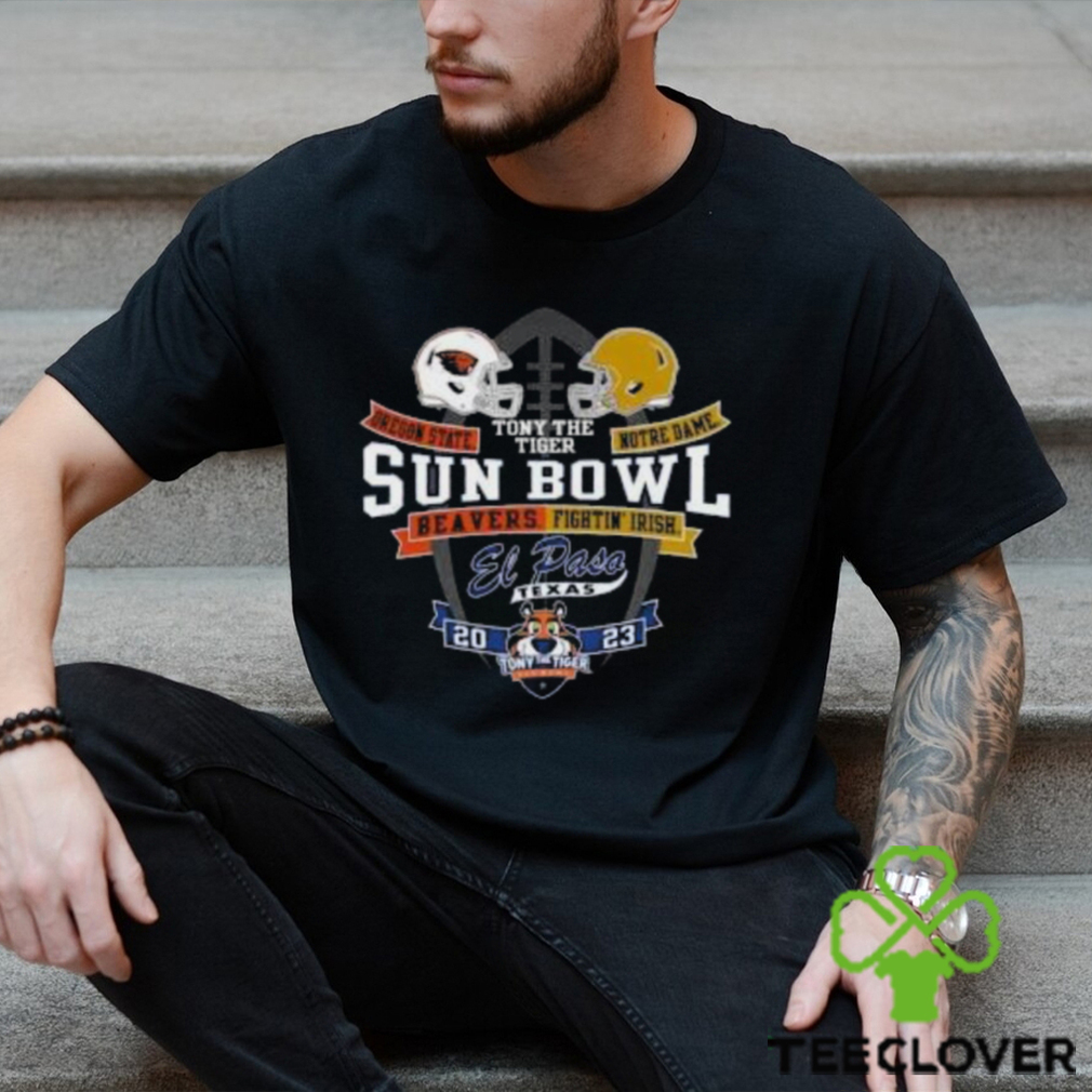 ()Oregon State Beavers vs Notre Dame Fighting Irish Blue 84 Unisex 2023 Tony The Tiger Sun Bowl Head To Head Helmet T Shirt hoodie, tank top, sweater and long sleeve t-shirt