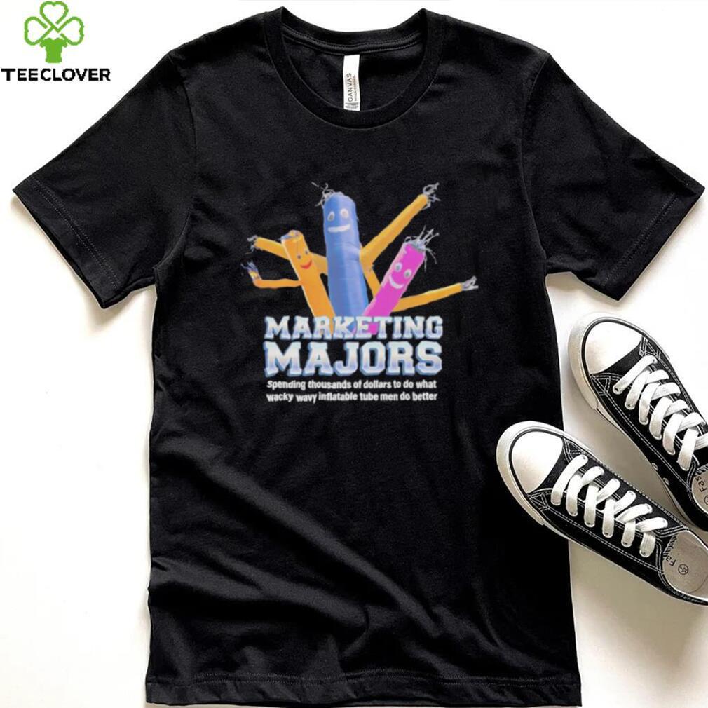 Why this is dangerous. Kids will look at today’s inequalities, and believe black brought it on themself. Instead of being a Original marketing Majors Wacky Wavy Inflatable Tube Men T Shirt of historical inequalities that were never addresses/repaired. Slavery caused a massive difference in wealth and knowledge/training. Jim Crow laws extended this by forcing a segregation where there were distinct class difference between quality of life, education and access to service. It was separated, but never remotely fair. Then you got the “war on drug” pushing harder penalities on drugs used by poor/liberals vs drugs used by rich/conservative. Black having knowledge and wealth debt from slavery/Jim Crow naturally got extra penalized. Even today the inequalties are active. PoC getting harsher sentences for the Original marketing Majors Wacky Wavy Inflatable Tube Men T Shirt PoC being more monitored by law enforcements, and targeted for smaller offenses. Still it wouldn’t be enough to just remove the inequalities, but historic debt needs to some degree be re-balanced. It’s hard to “pull yourself up by your shoe strings” when what you got is your dad or grand dad’s lead boots.