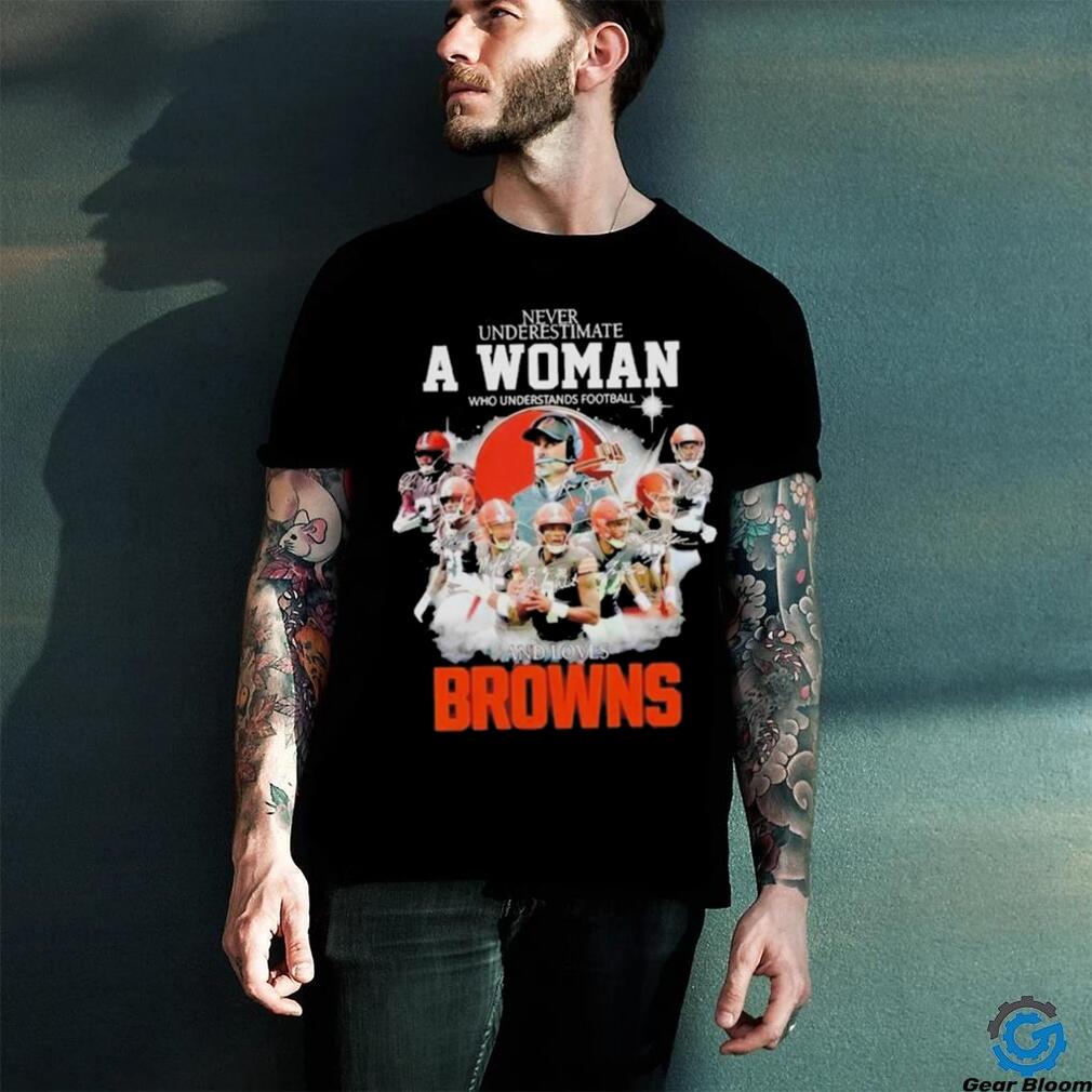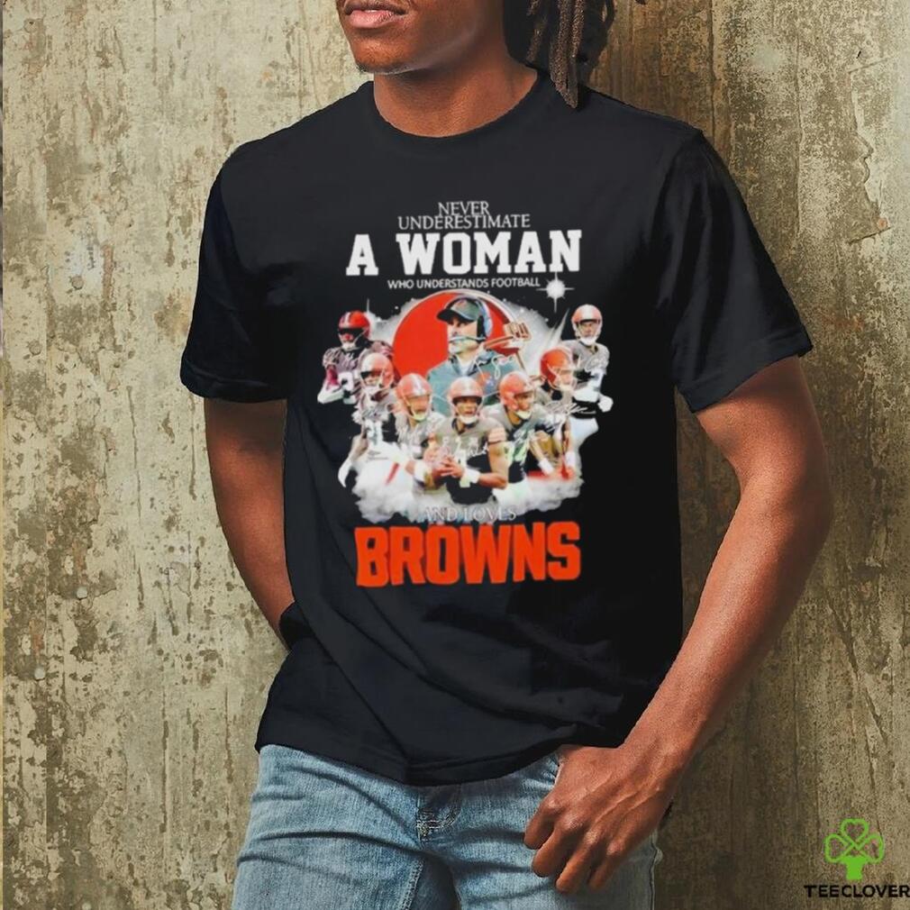 ()Original Never Underestimate A Woman Who Understands Football And Loves Cleveland Browns Signatures 2024 T Shirt, Hoodie, Sweater, Vneck, Unisex and T-shirt