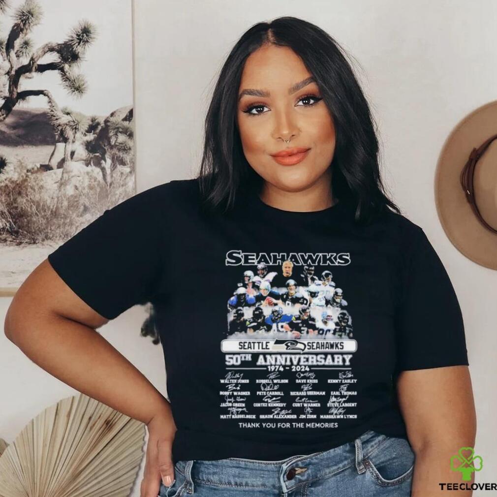 Original Seattle Seahawks 50th Anniversary 1974 2024 Thank You for the memories signatures shirt, Hoodie, Sweater, Vneck, Unisex and T-shirt