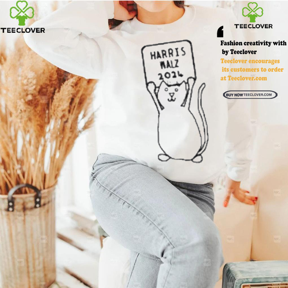 (The Bolshevik) sentinel slowly raised his head. But just at this moment the Original Small Cat and Harris Walz 2024 Sign T Shirt body of my friend rose up and blanketed the fire from me and in a twinkling the feet of the sentinel flashed through the air, as my companion had seized him by the throat and swung him clear into the bushes, where both figures disappeared. In a second he re-appeared, flourished the rifle of the Partisan over his head and I heard the dull blow which was followed by an absolute calm. He came back toward me and, confusedly smiling, said: “It is done. God and the Devil! When I was a boy, my mother wanted to make a priest out of me. When I grew up, I became a trained agronome in order. . . to strangle the people and smash their skulls? Revolution is a very stupid thing!” And with anger and disgust he spit and began to smoke his pipe.