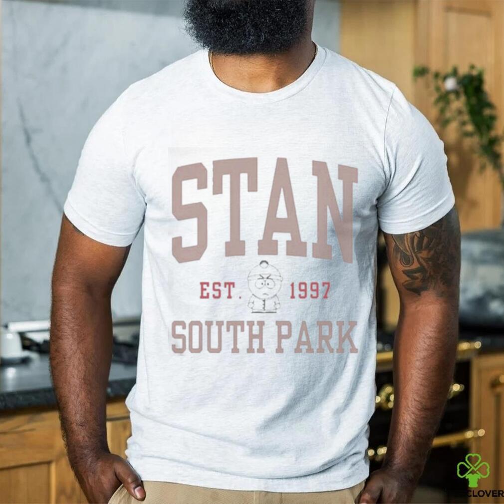 The Marvel Studios movies are known for Original southpark Stan South Park Est 1997 New Shirt, light hearted tone, and easy going nature. Like the first film, this film had jokes in it. But I found myself not laughing. A few worked, like when Mantis got hit by falling debree in the final third act battle. But Rocketβs humor was not funny, Star-Lord and Gamora flirting did not amuse me. Sure- some things were funny- some Baby Groot moments were hilarious, that Mantis scene again, Drax and Mantis had a few funny scenes, and when Star-Lord and Rocket were arguing about tape- I guess that was funny, but other than that- most jokes just didnβt land. It was a shame, cause the first movie was so damn funny. But this movie was also so slow. There was barely any action. Majority of the film takes place on Egoβs Planet, and shows Drax falling in love with Mantis, Peter and Gamora getting closer together, and Peter getting to know his father. Whilst the relationships would otherwise be interesting to watch progress, they didnβt progress in the way I wanted. It was really Rocket, Baby Groot, Yondu and Nebula- they are the main characters in this film- Peter, Gamora, Ego, Drax and Mantis all are backseat players for this film. But the action we got also felt lackluster and had way too much CGI, almost like a DC movie. It was either too little action, or too much CGI in the action. The only good action pieces were between the sisters Gamora and Nebula, who had a great cat & mouse story in this film.