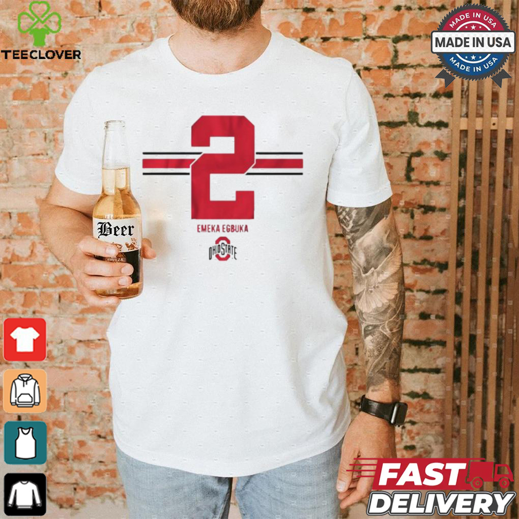 I would suggest that spending more often than not leads to the Osu Football Emeka Egbuka 2 Stripe T shirt of wealth, either by paying for goods expected to be sold right away, or in anticipation of sales in the future Either way, for the most part those things sold will not be produced or cared for if someone wasn’t going to buy them. Whether perishable items, most of which help preserve some more durable form of wealth, like human capital, for instance. Or durable forms of wealth are produced that will last beyond the current time period. It is the “spending” that encourages the increased production and preservation of wealth. So whether you spend it or not, in terms of money you will have the same amount of money at the end of the given time period. which we can refer to as savings.