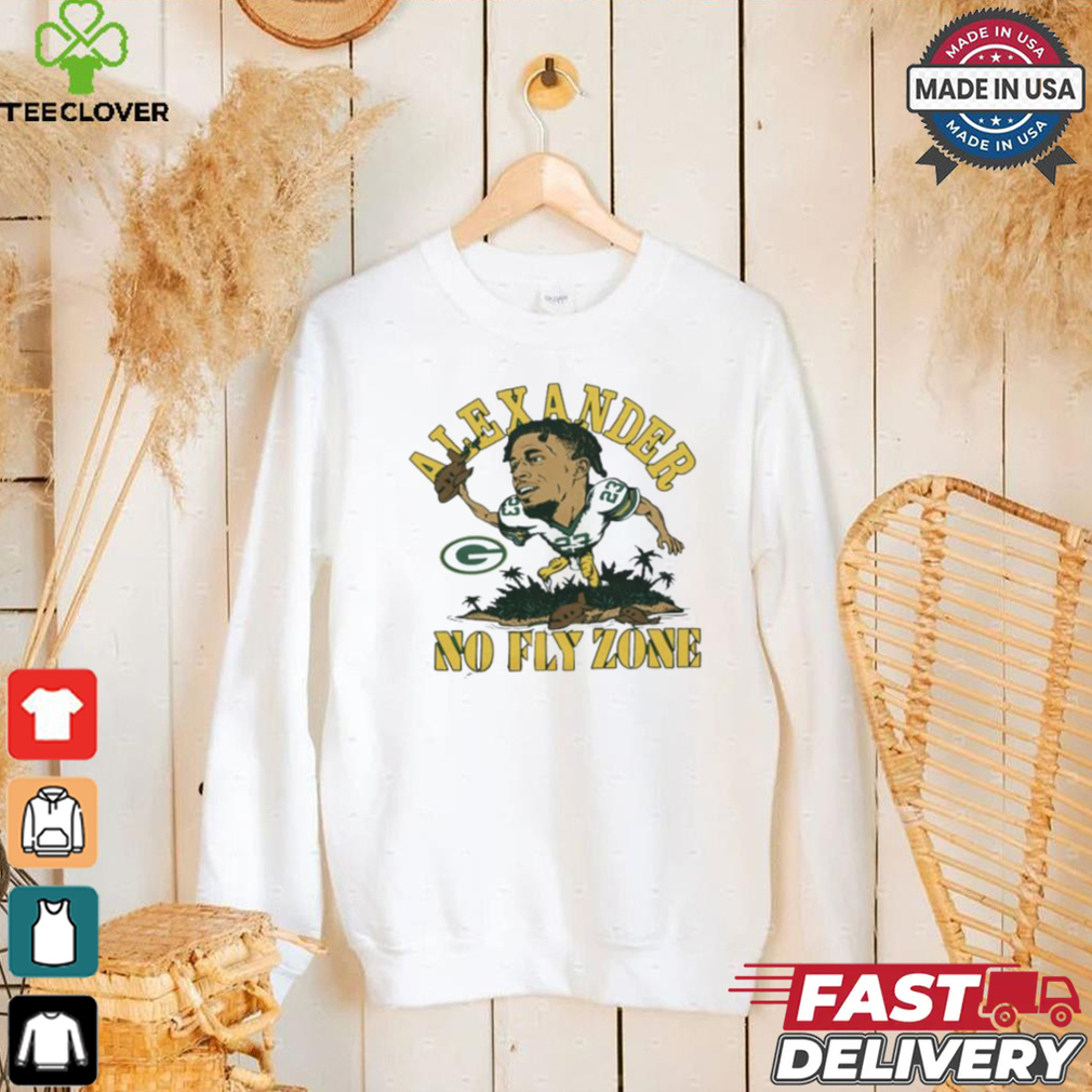Rugby is a lot more fluid. There is a squad of around 50 in a fully pro club, but only 23 in a match day squad. About 30 players at a club are regular performers in the โfirst team” squad, whilst the other 20 are developing players or reserves who step in as injury cover. The second tier of English Rugby Union is a mixture of professional and semi-professional players, the 3rd tier is mainly semi-pro. Younger players from the first tier sides are routinely sent out on loan to second and third tier clubs to gain experience. This can work the other way as well โ recently an injury crisis in a specialised position (tighthead prop) at my local top flight side led to a semi-pro player who works as a Packers jaire alexander no fly zone shirt from a 3rd tier club being borrowed on loan. One minute he’s teaching kids, the next he’s running out infront of 15,000 supporters alongside international players being paid over $500,000 a year.