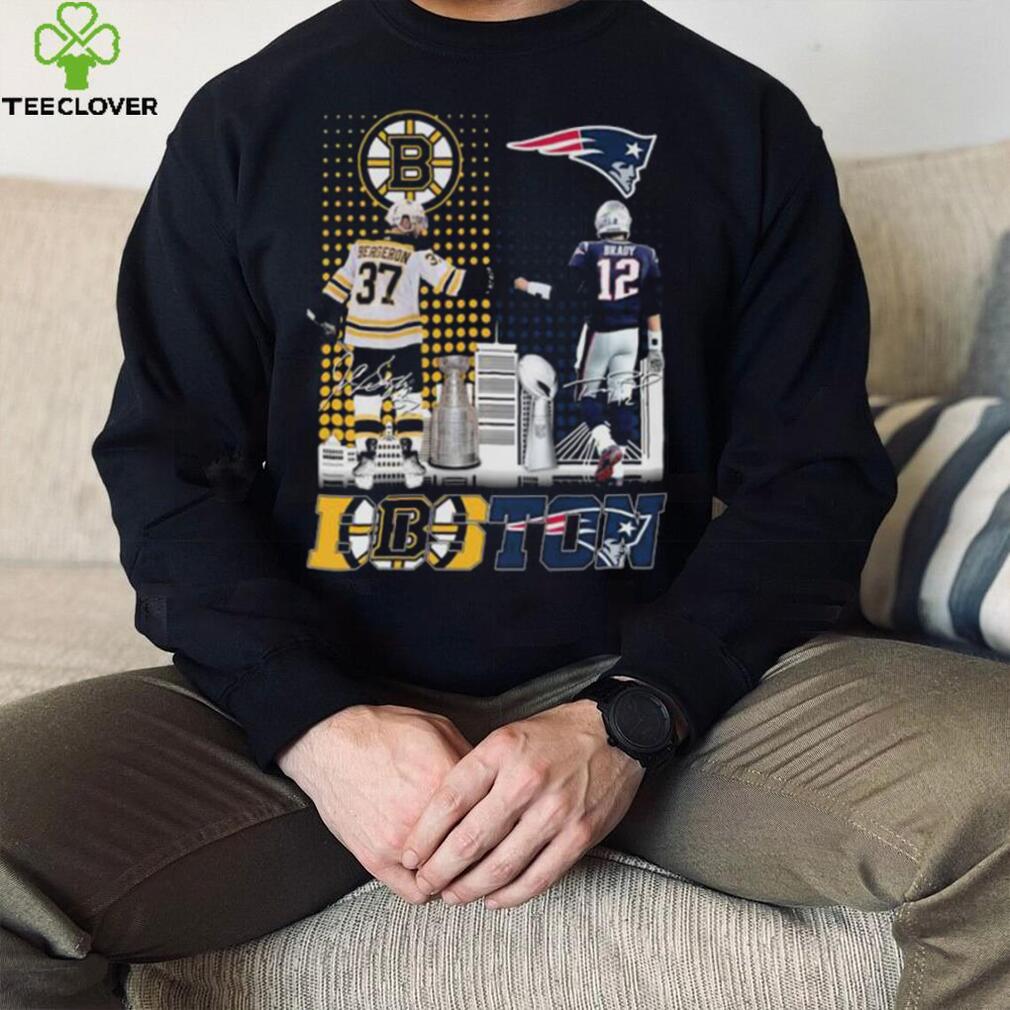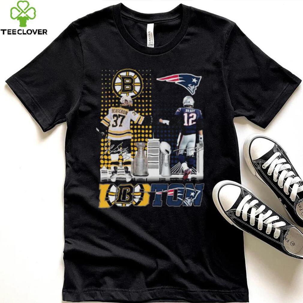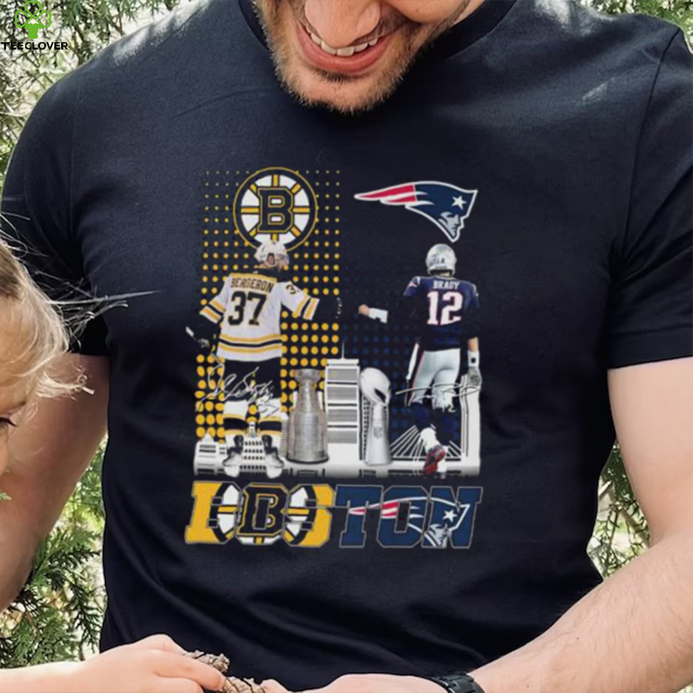 Patrice Bergeron and Tom Brady Boston City of Champions signatures shirt