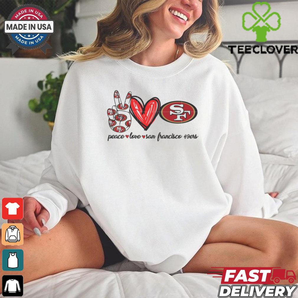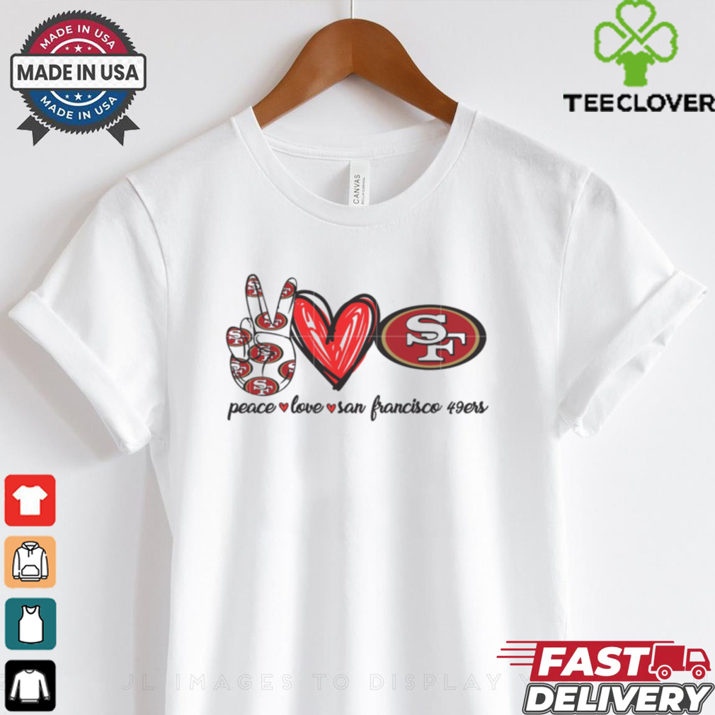 A lot of started to examine the Puritanism of the Peace Love San Francisco 49ers shirt , Victorian buttoned-down suggestions of discreetness were actually beginning to provide method to scantier as well as scantier swimwears, ankle-bearing skirts, and also short-sleeved t-shirts. As World War One impended upon the perspective, the tee was actually regarding to be actually conscripted to the military Port Coquitlam.