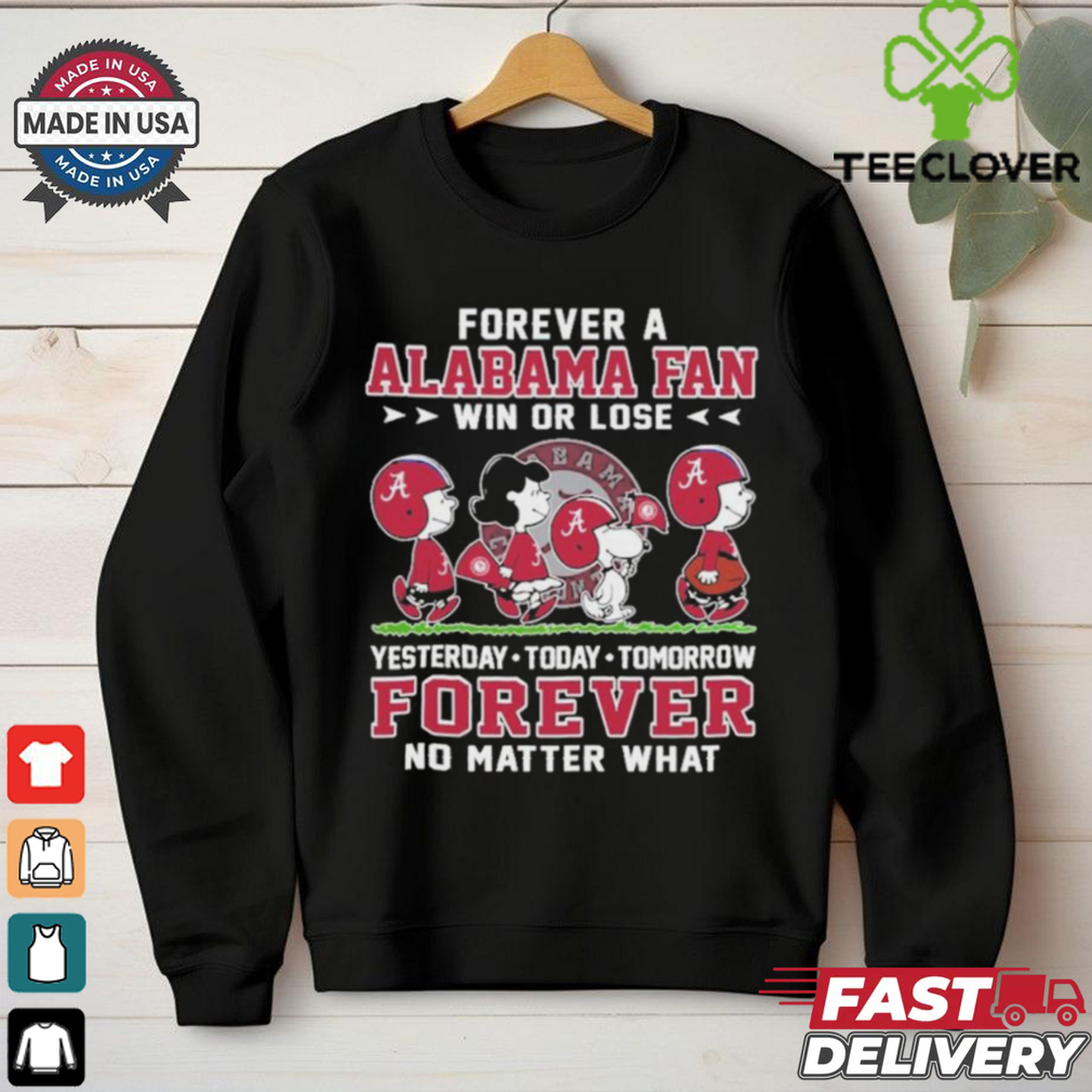 ()Peanuts Characters Forever A Alabama Crimson Tide Fan Win Or Lose Yesterday Today Tomorrow Forever No Matter What Shirt hoodie, tank top, sweater and long sleeve t-shirt: best style for you