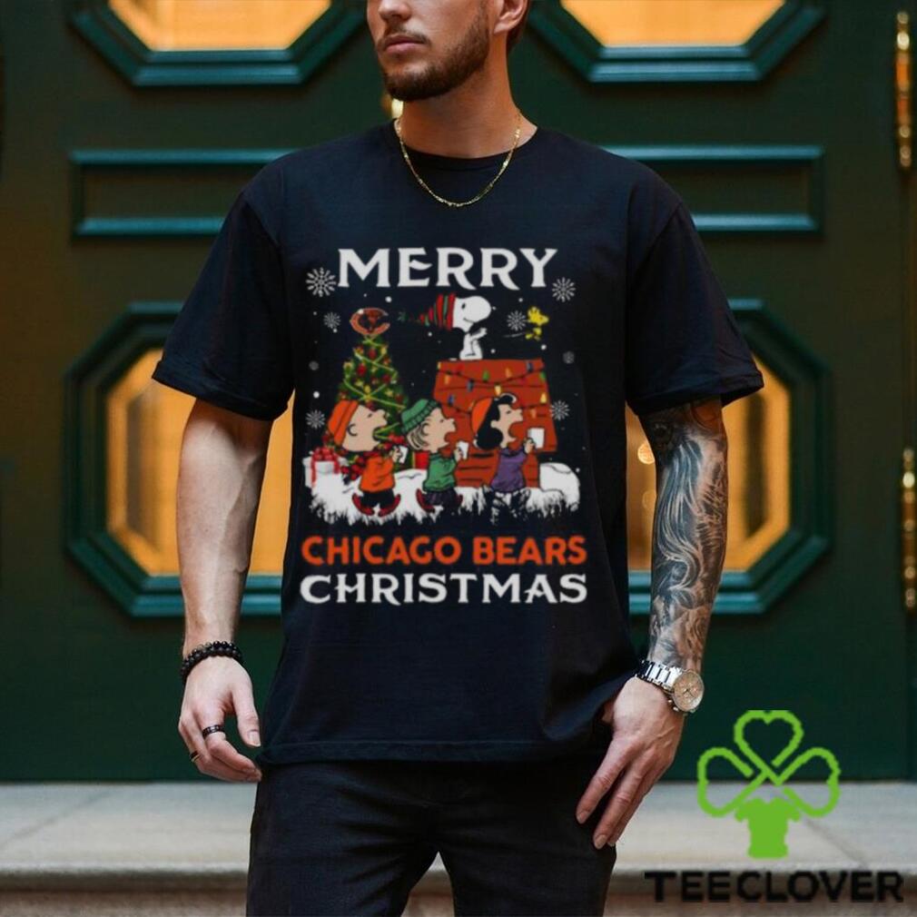 You see, Christmas Eve is really the Peanuts Characters Snoopy Merry Chicago Bears Christmas shirt when my momβs sisters and brothers would all gather in South Boston with their kids (My cousins of course.) Since they too were teens like myself back in the day, they all did their own thing on Christmas morning β But the one thing they didnβt want to do was leave their gifts after opening them. So Christmas Eve became more important to us as a whole to come together, celebrate and then visit midnight mass at the local church before going home. By the time I got home, it was after 1am, so I guess it was really Christmas morning if you want to get technical about it. The gifts were promptly opened and I was in bed no later than 3am to sleep most of the morning in peace. Now with two kids of my own, I will be getting up Christmas morning to greet the day and watch their faces. Mainly because Santa Claus is still important to them and he only visits on Christmas Eve when youβre asleep as all know.
