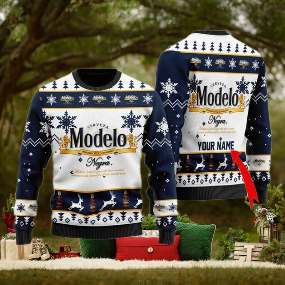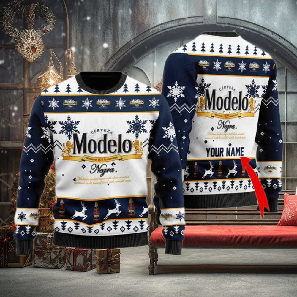 ()Personalized Modelo Beer Christmas Ugly Sweater,
