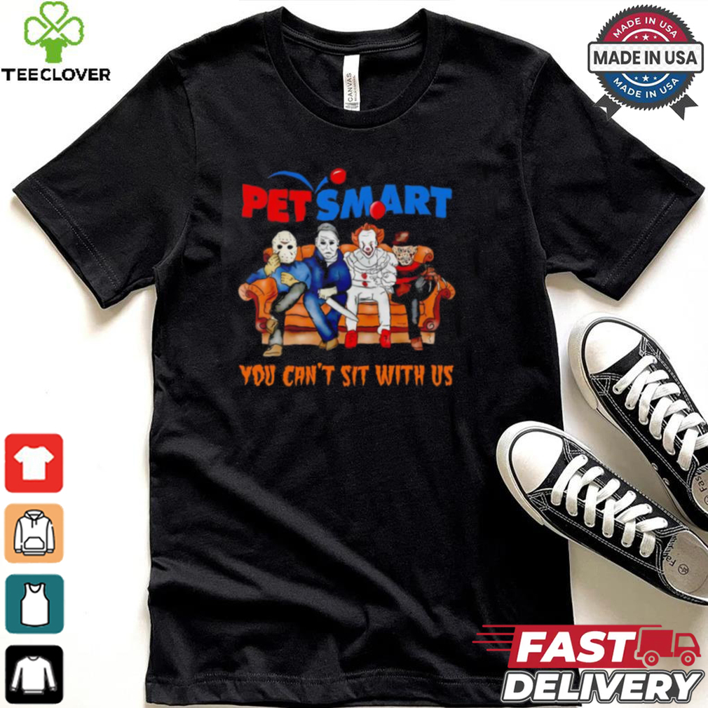 My grandfather was fond of Pet smart club you can’t sit with us Voorhees Myers Pennywise and Krueger Halloween shirt. When diabetes affected his legs and made him immobile, he continued to whistle. When glaucoma affected his eyes and he lost his eyesight, he continued to whistle. As someone in her early 20s, I found my granddad’s immense pleasure from life overwhelming and infectious. Here was a person who was losing all his senses, yet was gracious enough to utilize and maximize his happiness from the senses he still retained. Try whistling. It improves your lung capacity and will send more oxygen into your bloodstream, making you feel better instantly.Try cooking. I hear it is quite therapeutic when used to counter depression. Try duck meat (if you eat non-veg). If you have trouble sleeping, I read that tryptophan (an amino acid in duck meat) puts you to sleep instantly. Alternatives: try honey with milk before sleeping.