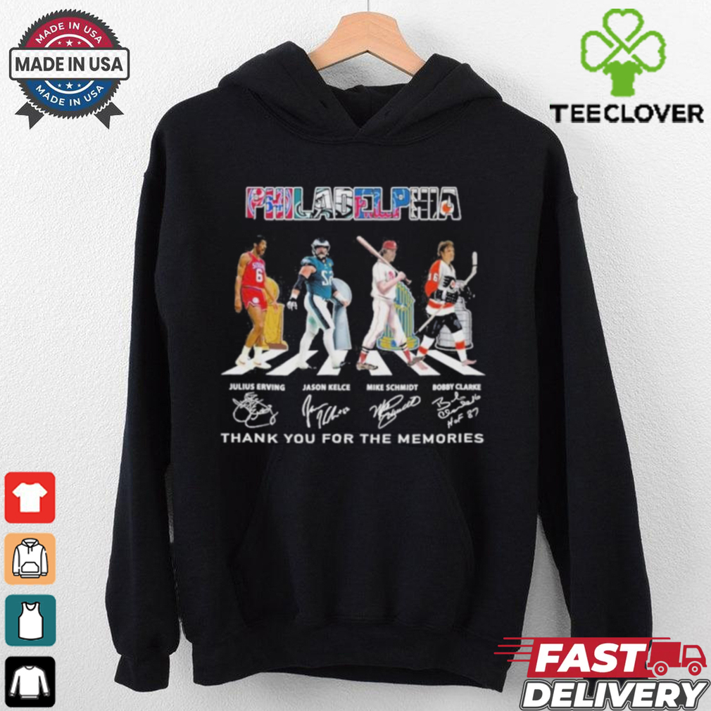 Philadelphia Abbey Road Julius Erving Jason Kelce Mike Schmidt And Bobby Clarke Signatures Shirt hoodie, tank top, sweater and long sleeve t-shirt: best style for you