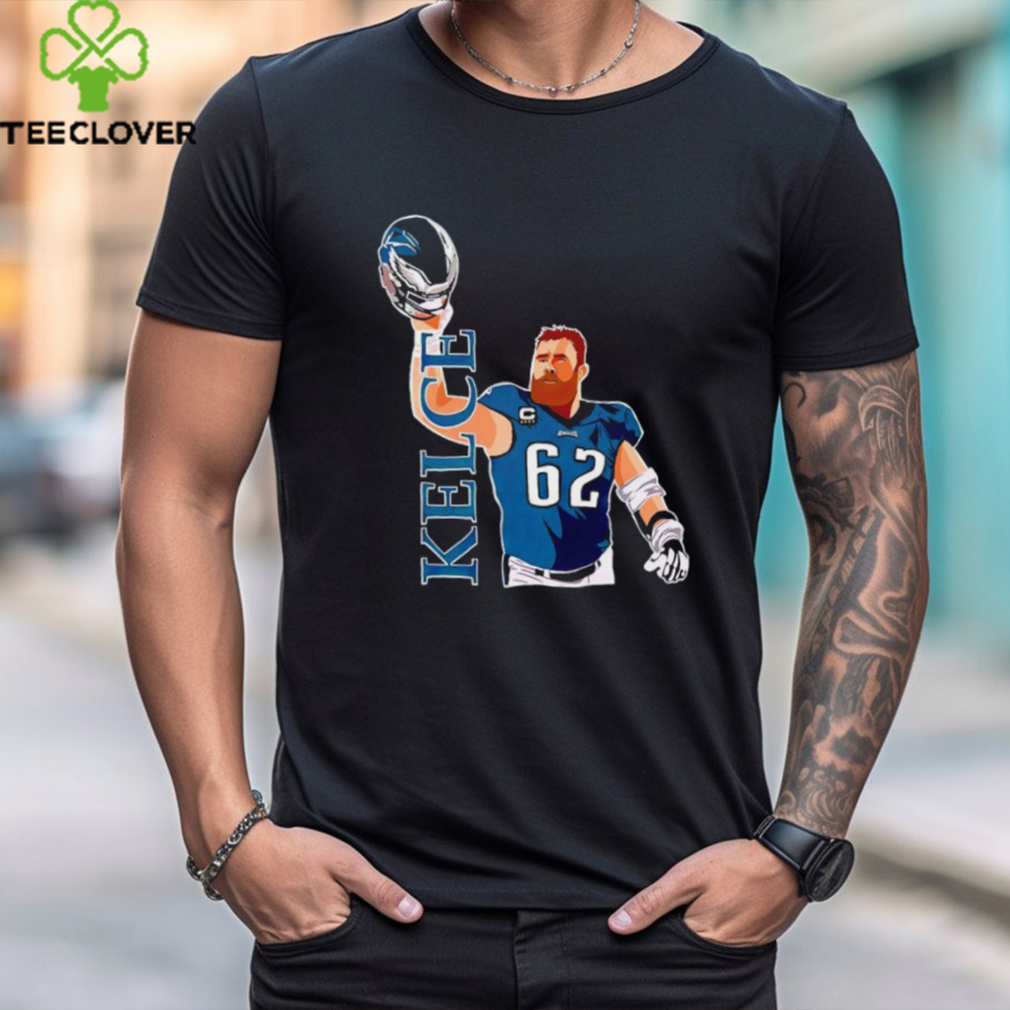 Philadelphia Eagles Jason Kelce holding helmet shirt