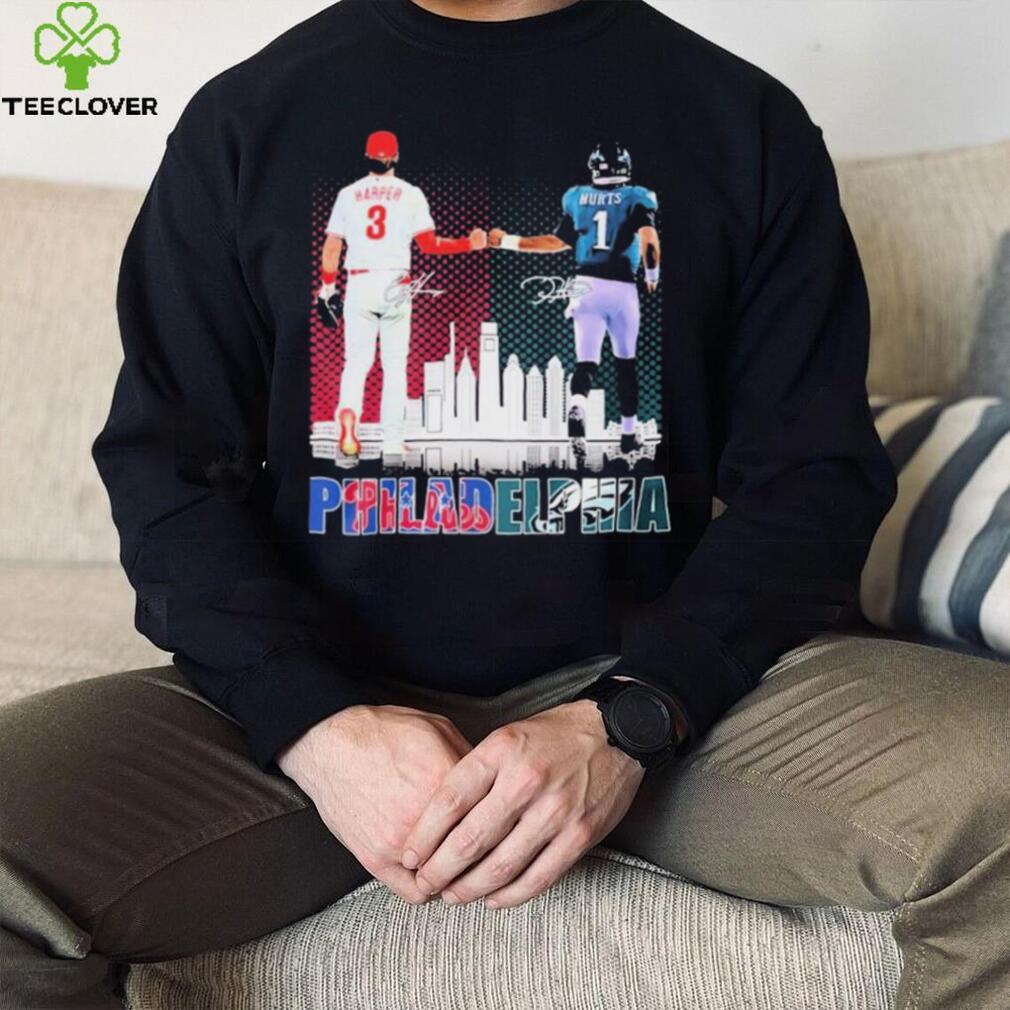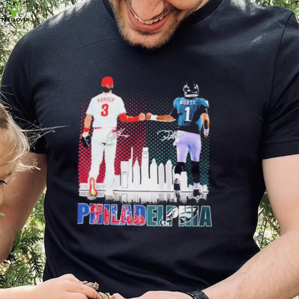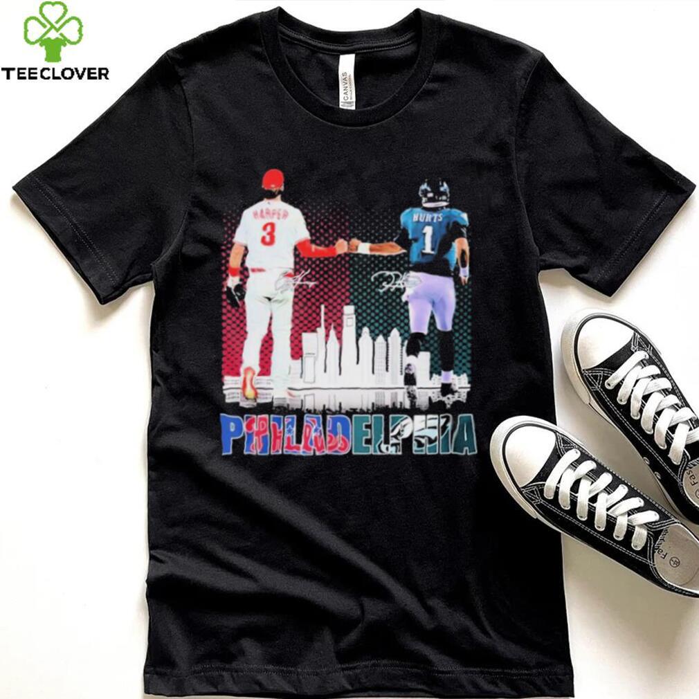 (Philadelphia Jalen Hurts And Bryce Harper Philly’s Skyline Signatures Shirt, unisex)