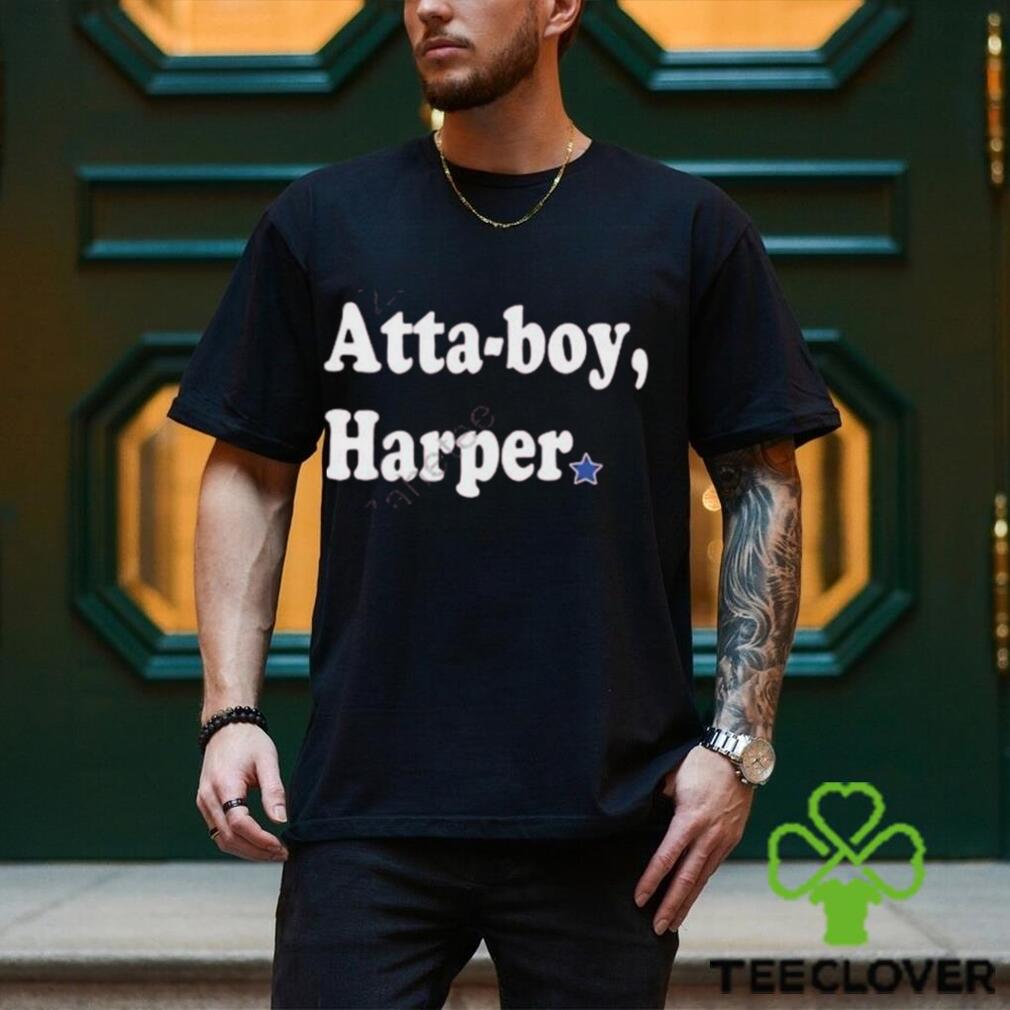 I was also having trouble with seeing in sixth grade and needed to sit up in the front because I couldn’t see the Phillygoatco Atta Boy Harper 2023 shirt and the kids claimed I was playing teachers pet and I got in big trouble for playing teachers pet but a routine I checked in the Phillygoatco Atta Boy Harper 2023 shirt office found that I really can’t see and people started to believe me but it took that to make them all quit picking on me and seeing me for Phillygoatco Atta Boy Harper 2023 shirt and then they kept getting in trouble for treating me badly and the kids didn’t like that they were getting in trouble all the time and that I was the one who kept getting in trouble but they just were jerks and didn’t like the fact that they got caught. seventh and eighth grade I went back to homeschool because my mom figured that was again another good mo she could keep an eye on me and the kids wouldn’t bother me because I was by myself. and then nice through 12th grade there was some jerk off that I had one algebra class with my freshman year who followed me around anywhere you can find me all four years and picked on me and got himself out of school suspension six days. and finally the very last week of my senior year he tried to throw me down the stairs. He tag teamed with the buddy and they were whispering things at each other and decided 1,2,3 and threw themselves at me and my backpack hit me in the back of the head.