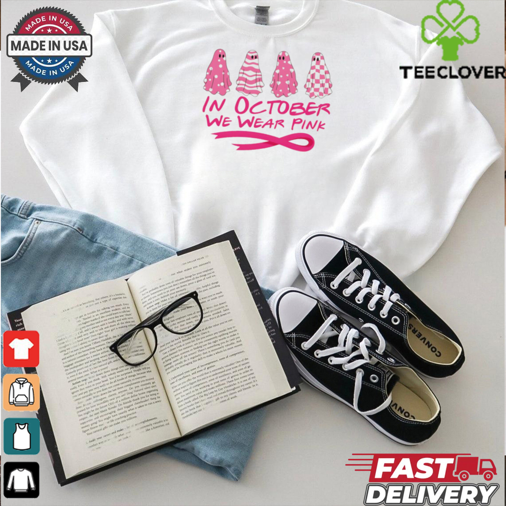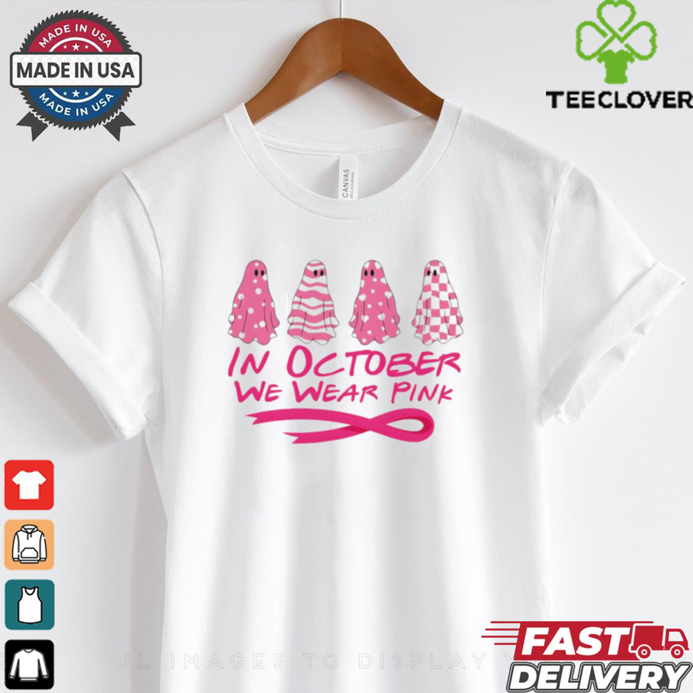 ()Pink ghost October Breast Cancer Awareness shirt hoodie, tank top, sweater and long sleeve t-shirt: best style for you