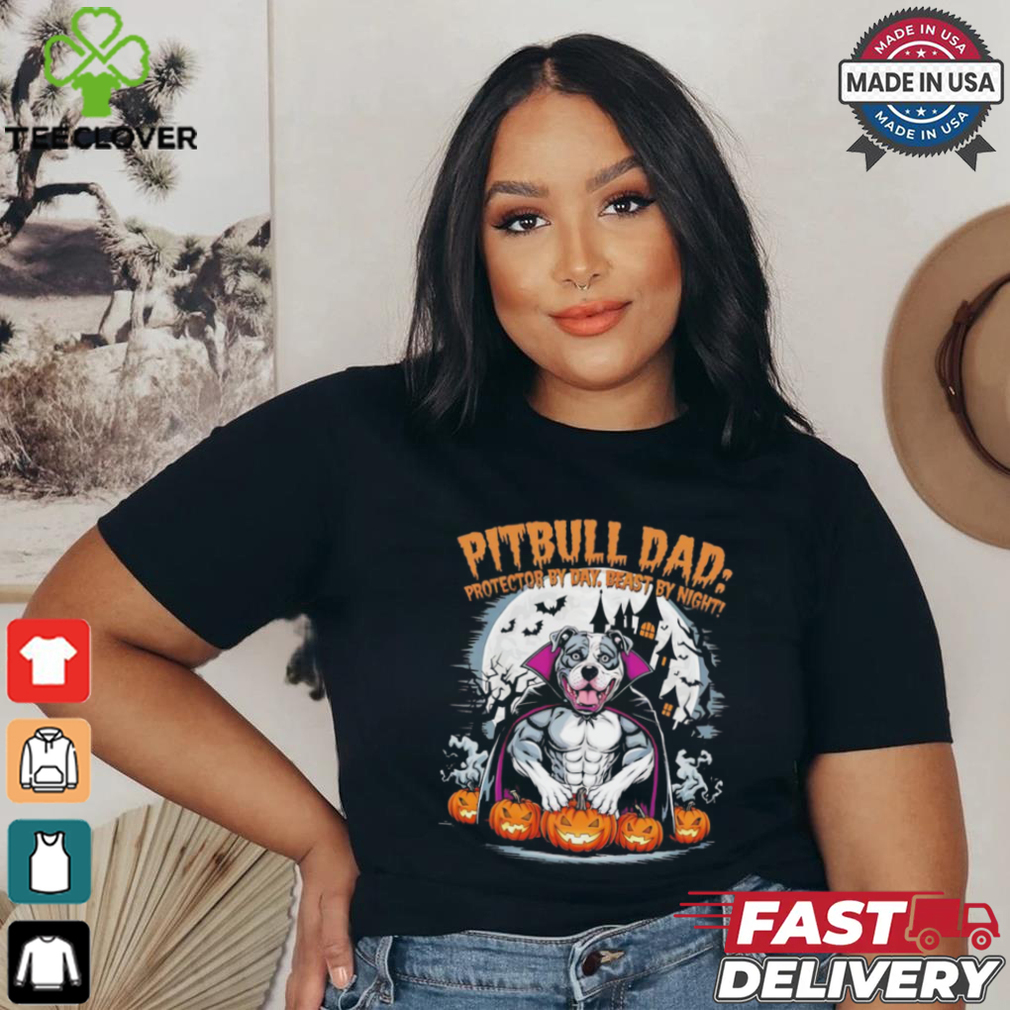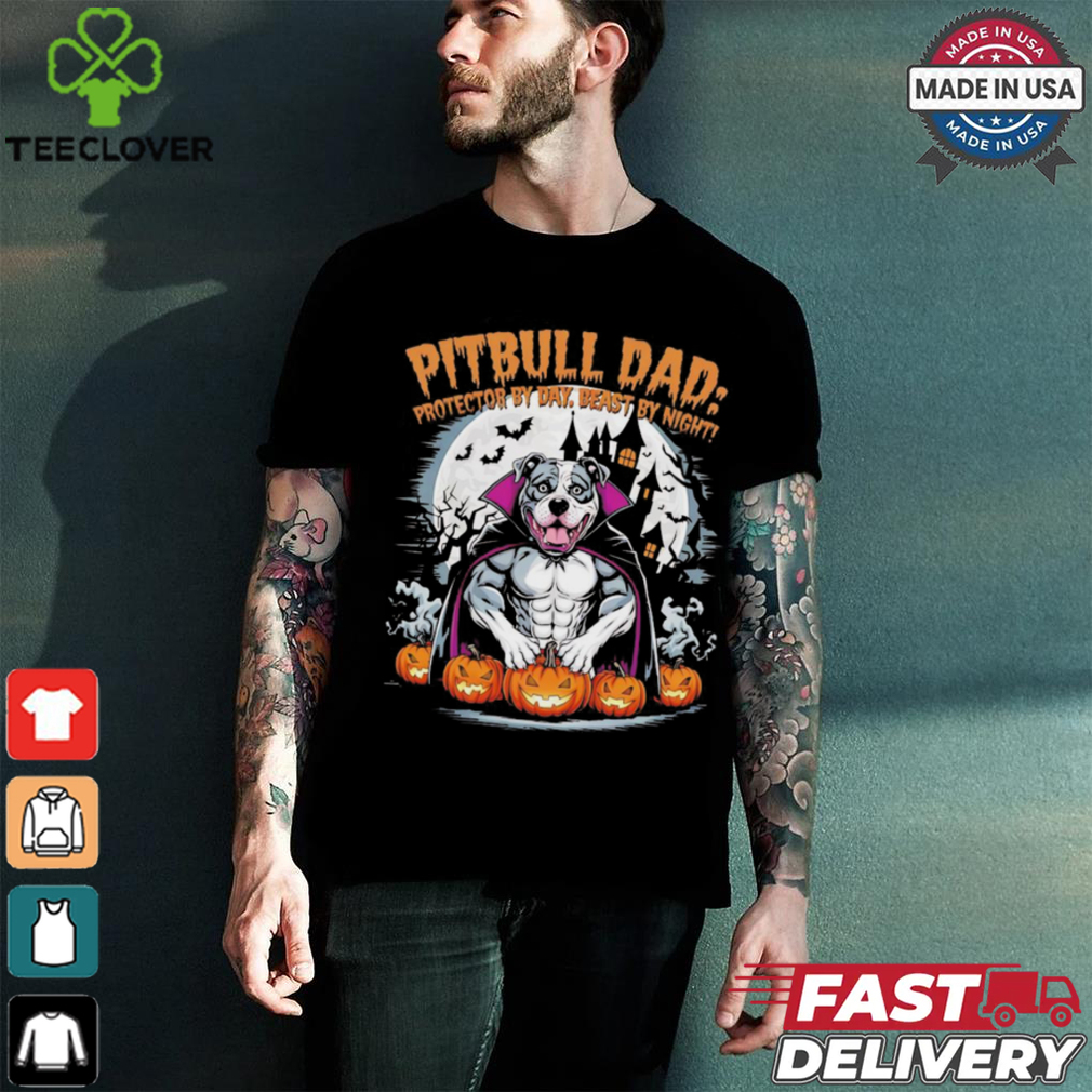 Best Pitbull dad protector by day beast by night Halloween shirt