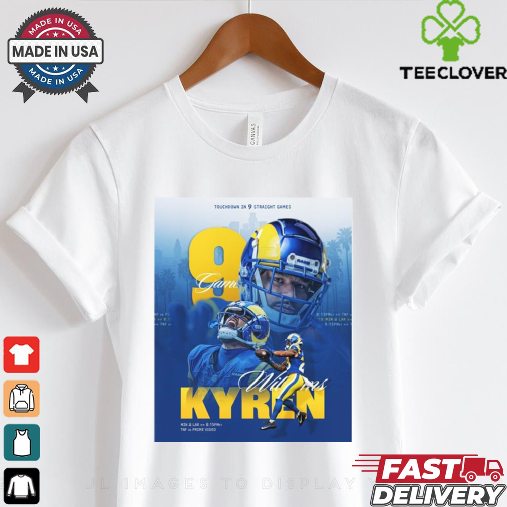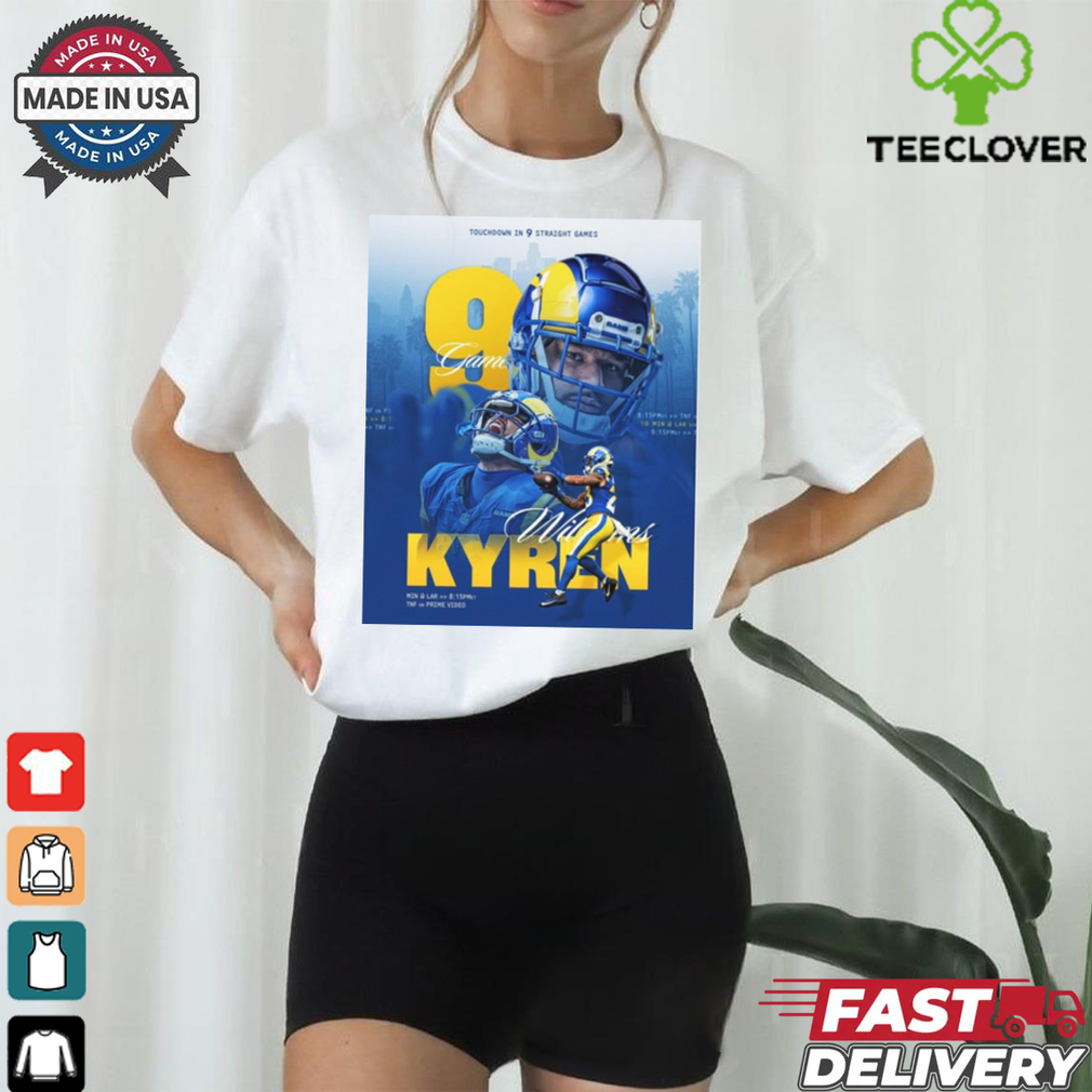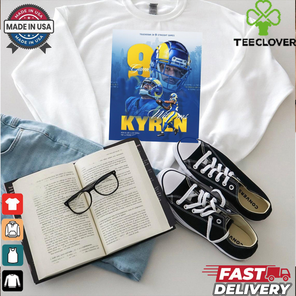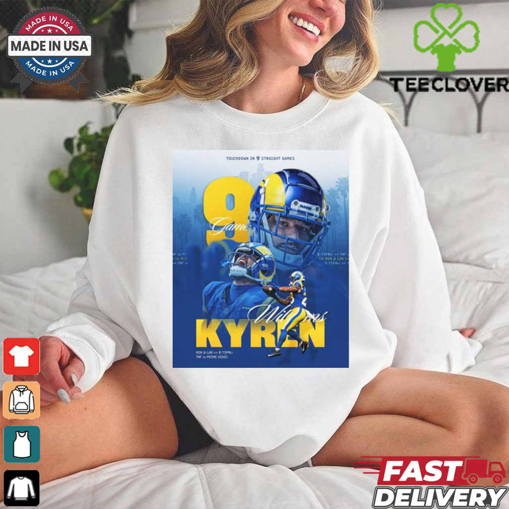 The identify weave is actually a combo of each cotton poplin and also Poster Kyren Williams Los Angeles Rams NFL 2024 Touchdown In 9 Straight Games t shirt . It is actually interweaved utilizing lengthy staple cotton (for additional gentleness) and also, similar to the Oxford t shirt interweave, just the warp thread is actually colored.These are actually distinctive males’s weaves that make an angled design and also provides the t-shirts fascinating tones. Each weaves are actually warmer than timeless poplin therefore are actually favoured in the chillier periods.