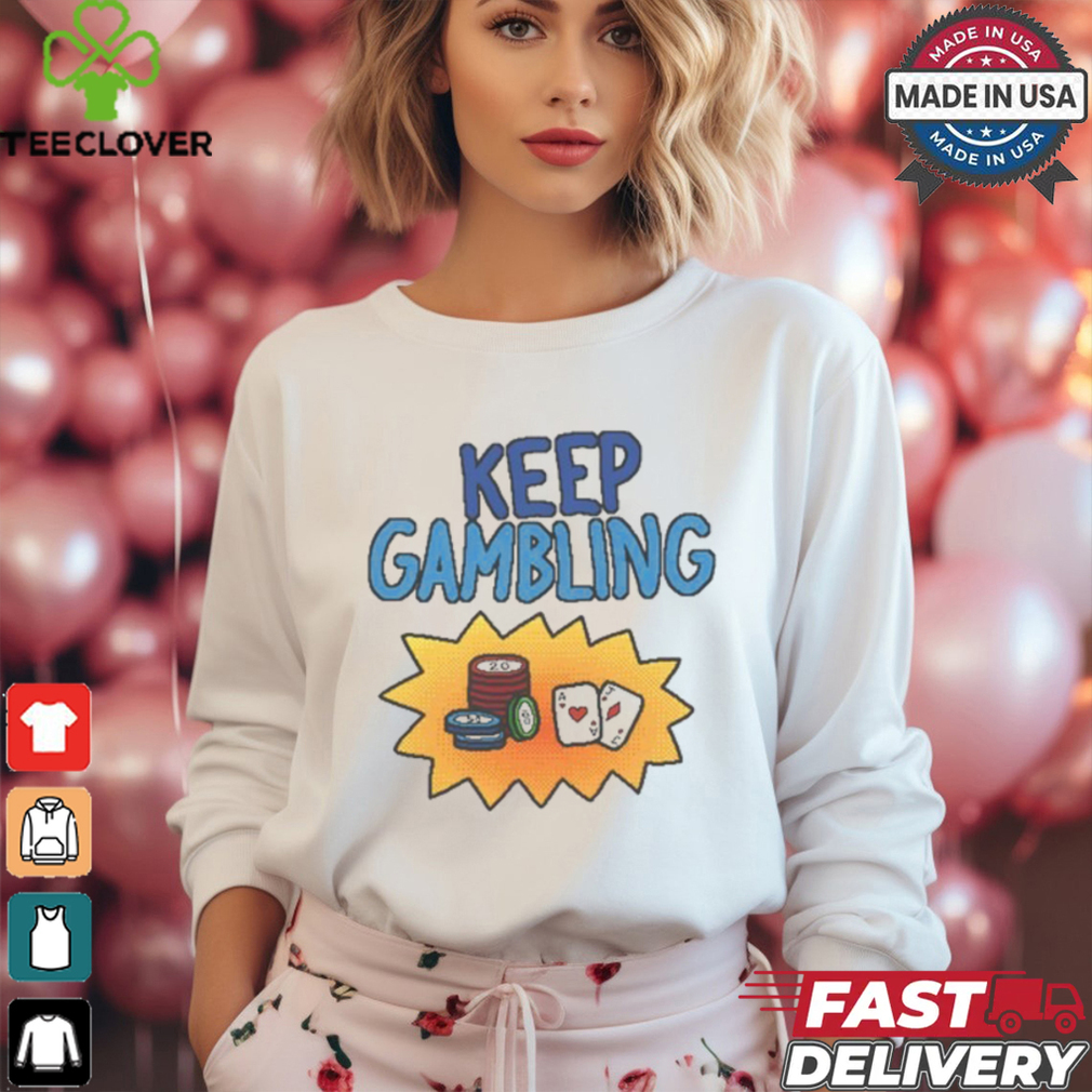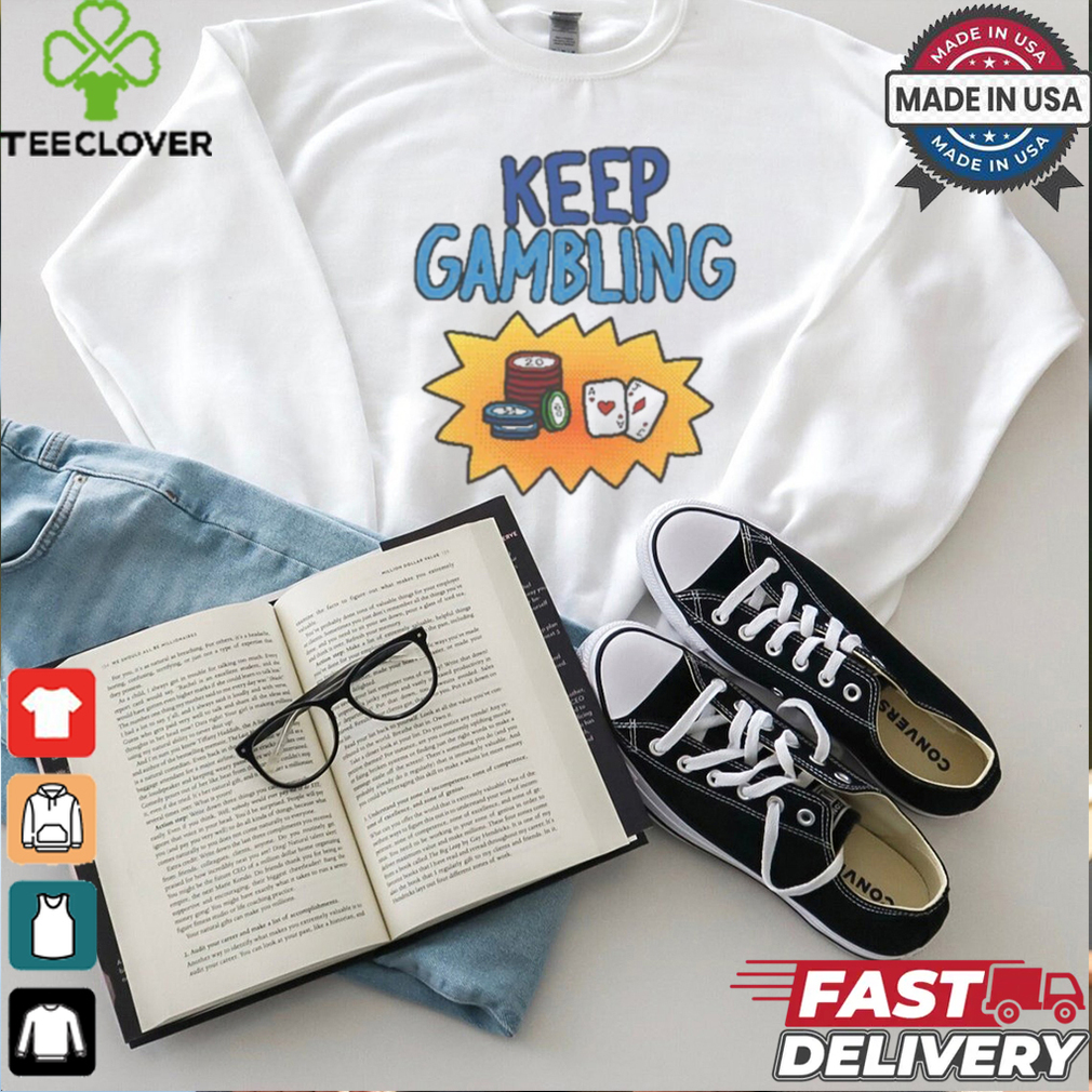 You can be happy in the midst of the biggest Raxd Store Keep Gambling Shirt . Just make peace with the concept that the way you feel no longer reflects what’s going on around you. Waltz to your own tune, like one of those dudes on their skateboards, who wear headphones and have clearly detached themselves. Of course continue to make only supremely rational choices and keep dedicating yourself to all things that help build a successful life, but you are no longer dependent on having finished before you are allowed to be happy. I’ve been at it for almost ten years now, and it has been a triumph.