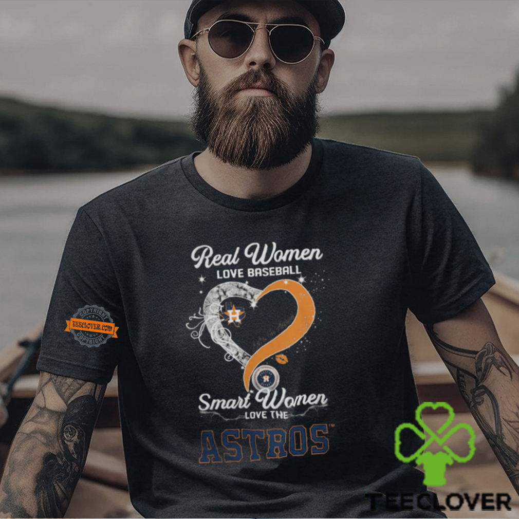 You see, Christmas Eve is really the Real Women Love Baseball Smart Women Love The Houston Astros Let’s Go Astros Heart Diamond Shirt when my mom’s sisters and brothers would all gather in South Boston with their kids (My cousins of course.) Since they too were teens like myself back in the day, they all did their own thing on Christmas morning — But the one thing they didn’t want to do was leave their gifts after opening them. So Christmas Eve became more important to us as a whole to come together, celebrate and then visit midnight mass at the local church before going home. By the time I got home, it was after 1am, so I guess it was really Christmas morning if you want to get technical about it. The gifts were promptly opened and I was in bed no later than 3am to sleep most of the morning in peace. Now with two kids of my own, I will be getting up Christmas morning to greet the day and watch their faces. Mainly because Santa Claus is still important to them and he only visits on Christmas Eve when you’re asleep as all know.