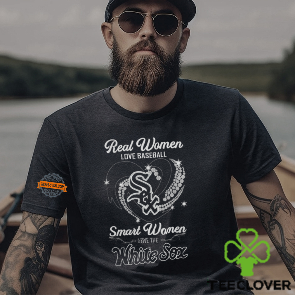 Real Women Love Baseball Smart Women Love The White Sox Diamond Heart Shirt
