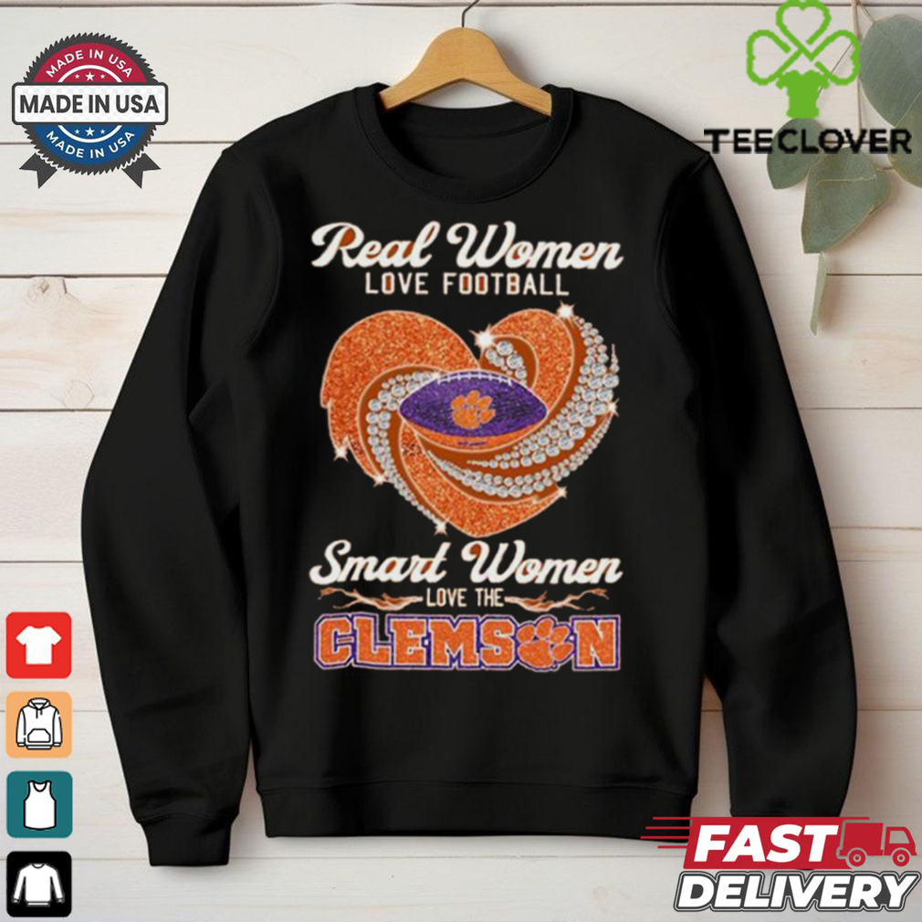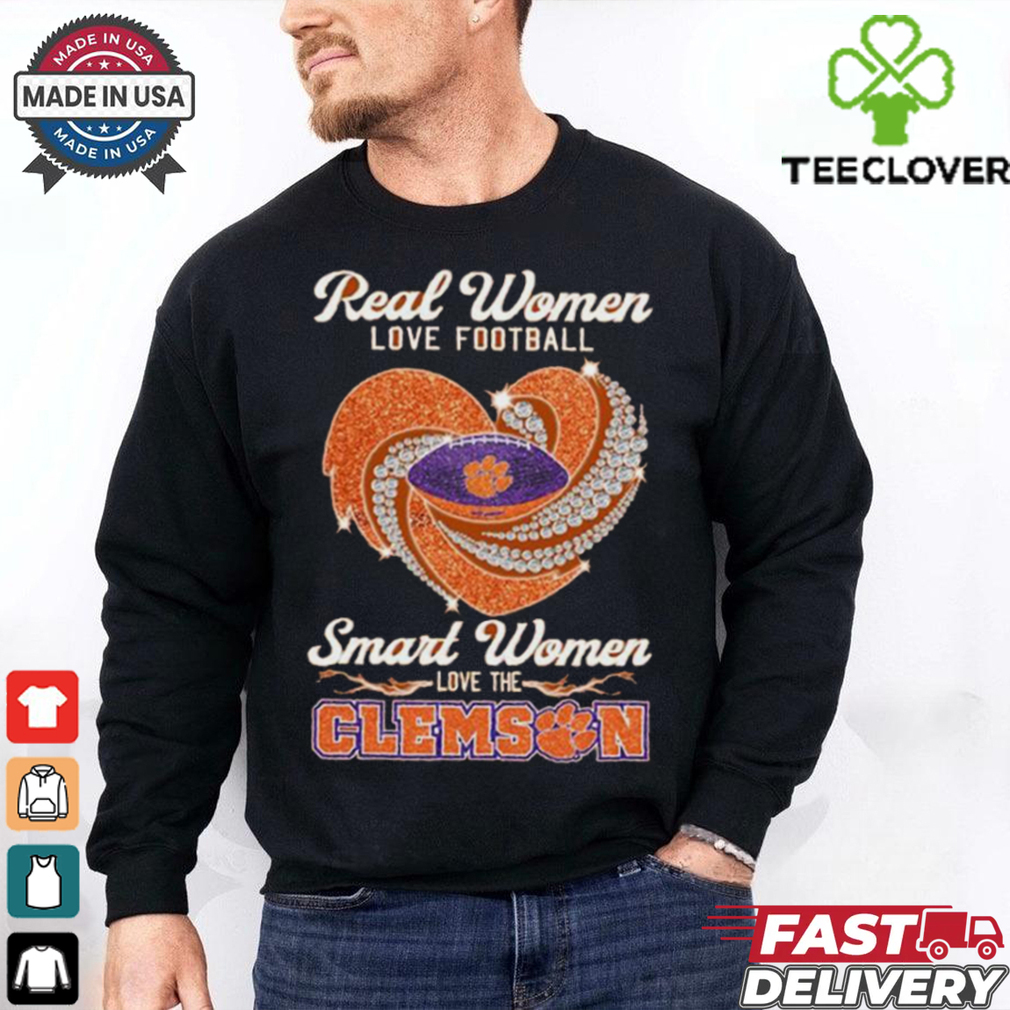 ()Real Women Love Football Smart Women Love The Clemson Tigers Heart Diamond 2024 shirt hoodie, tank top, sweater and long sleeve t-shirt: best style for you