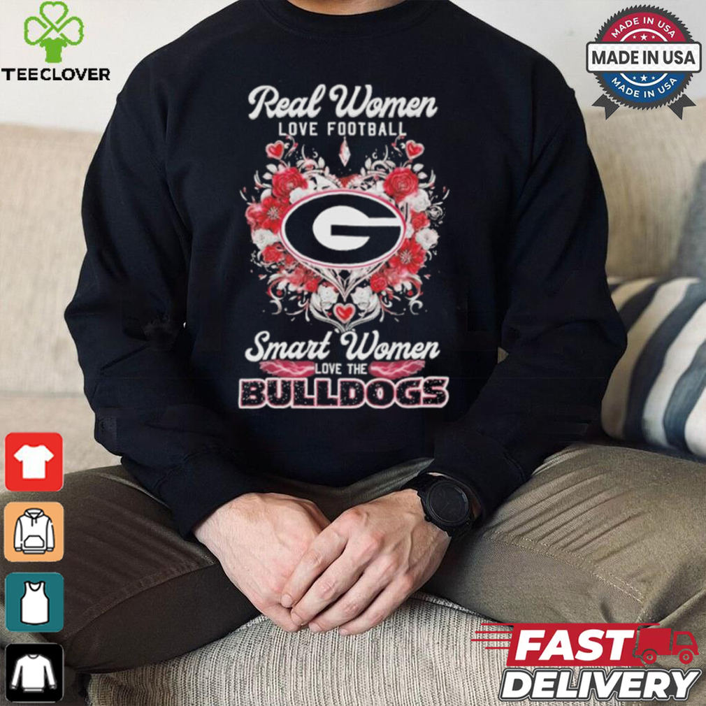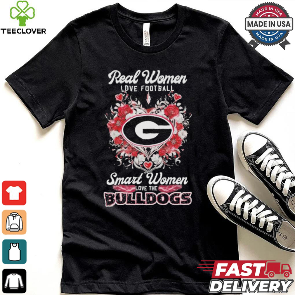 Real Women Love Football Smart Women Love The Georgia Bulldogs X Heart Flower Shirt