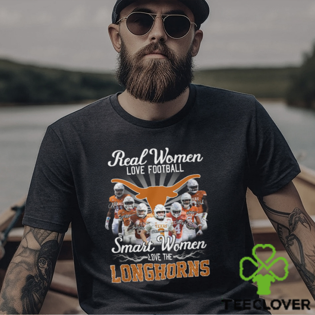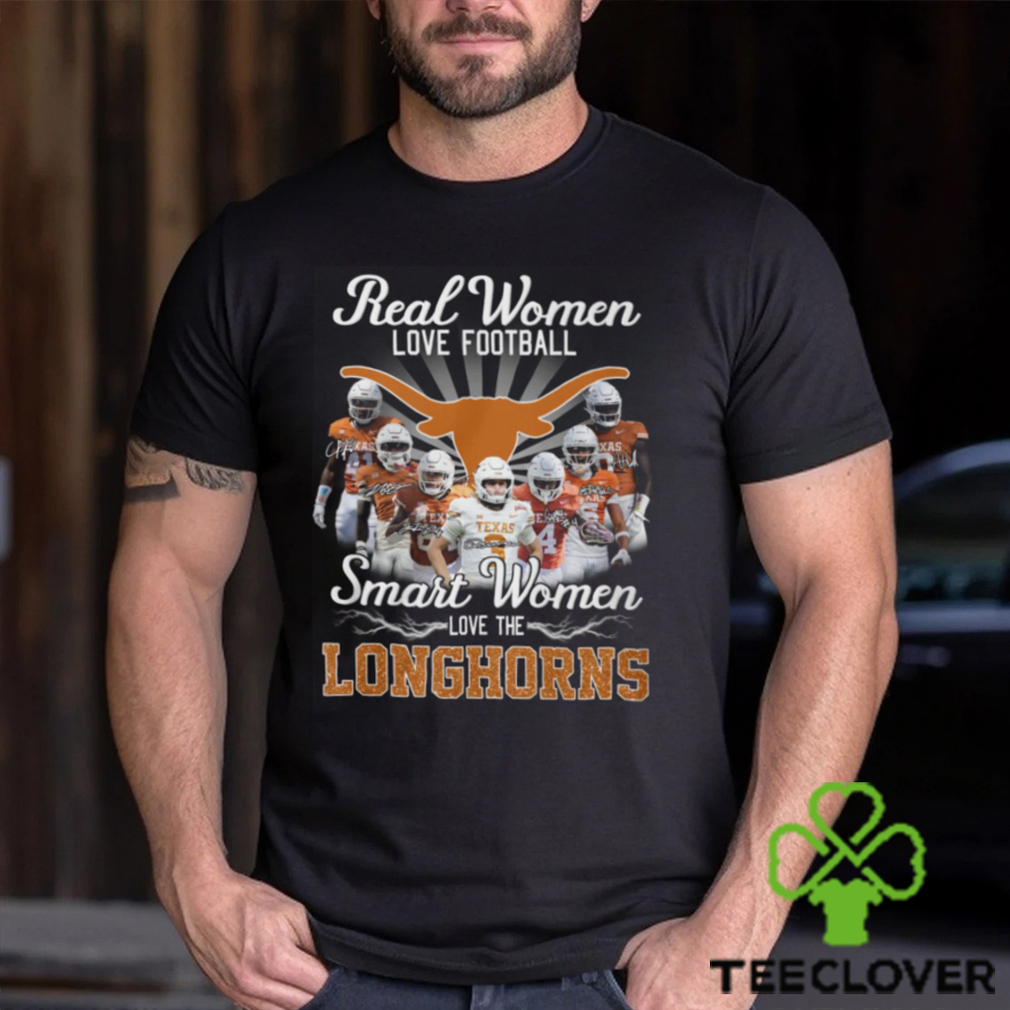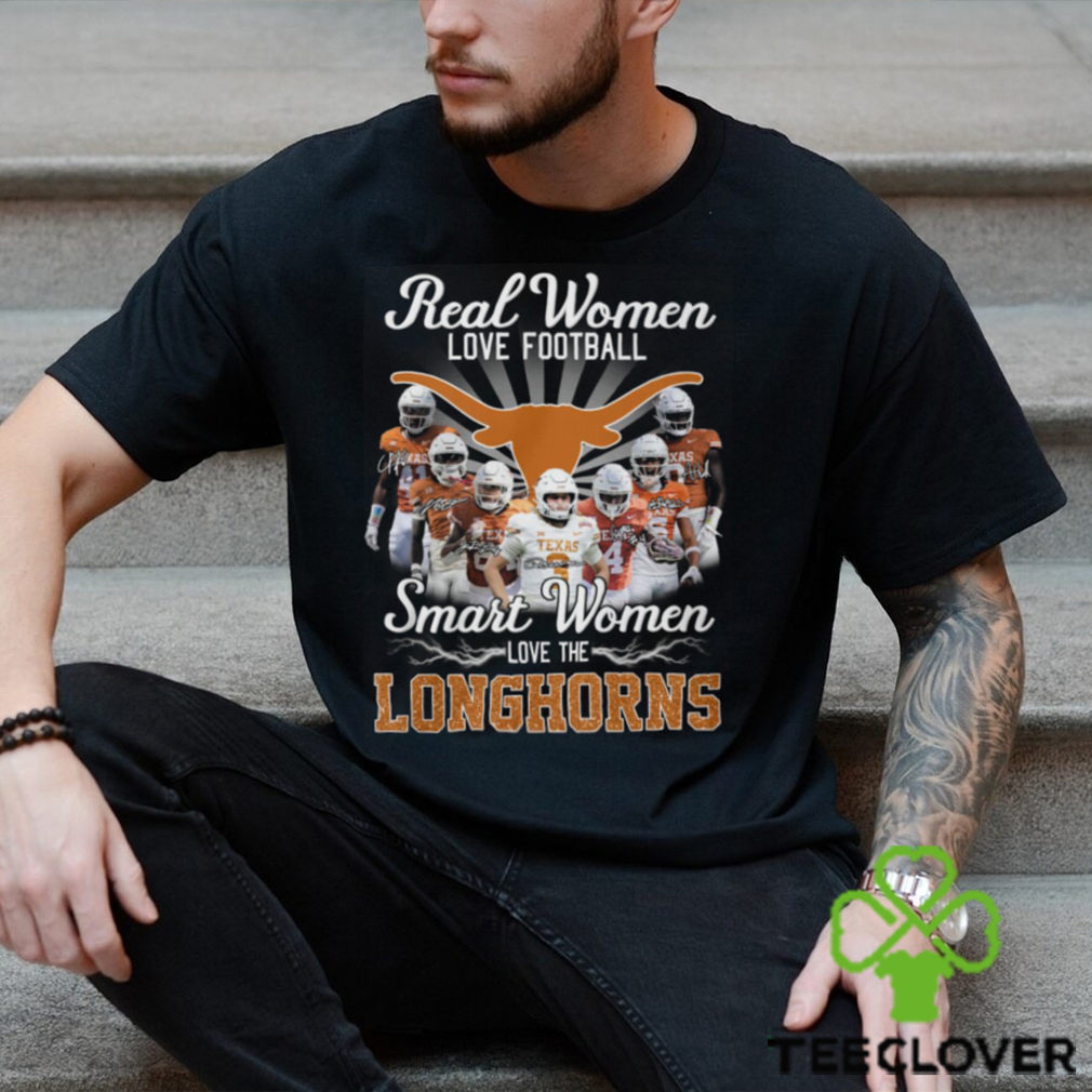 Since many households would hold parties during these two evenings, they may not concentrate on their jobs as they do in the Real Women Love Football Texas Smart Women Love The Longhorns Shirt time. Therefore, the company would rather let their employees stay at home to do some shopping and preparation than stay in the office to think something else not related to work. There has a policy stating that Christmas Eve is a holiday in employee handbook or employment agreement or contract. It might state that employees receive paid time off or premium pay for working on the holiday. For those retail business workers who are more busier during these two days, they may arrange other time to have a rest, while those who have these two days off and get paid would not have this advantage. They probably arrange another two holidays for working days or do not compensate overtime work. For those companies who do not need to deal with customers, if multiple employees ask for the time off, the company could accommodate such requests.