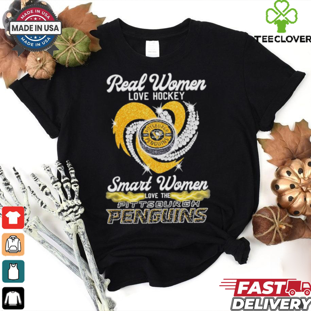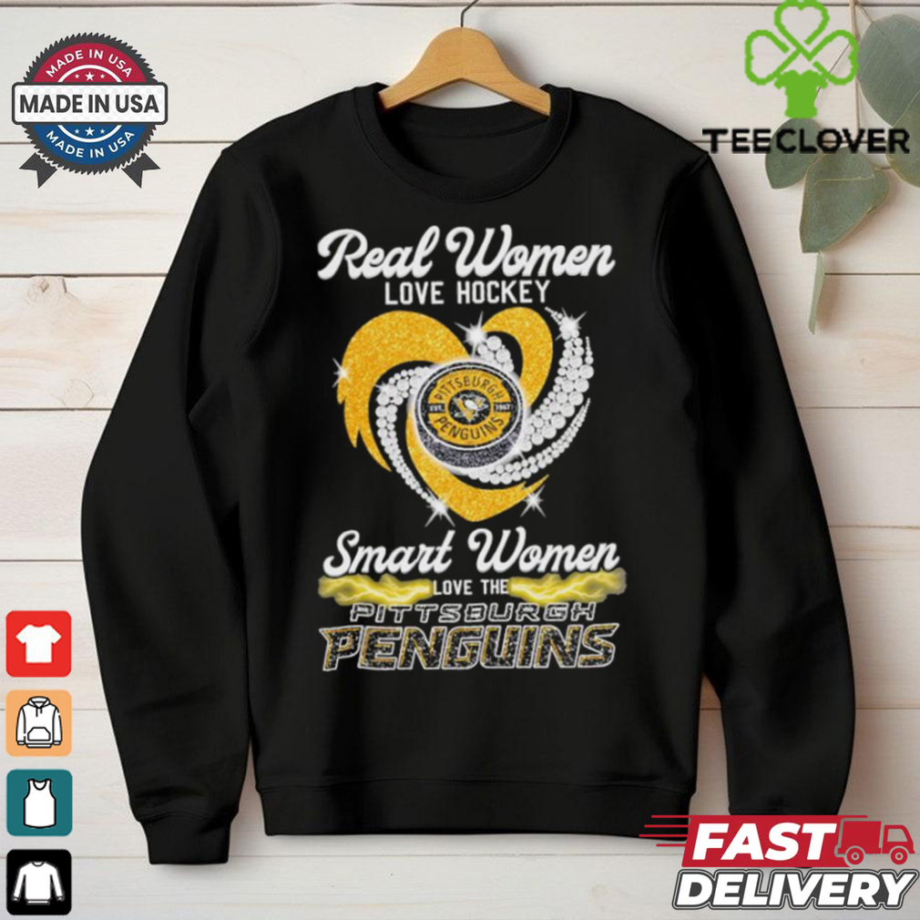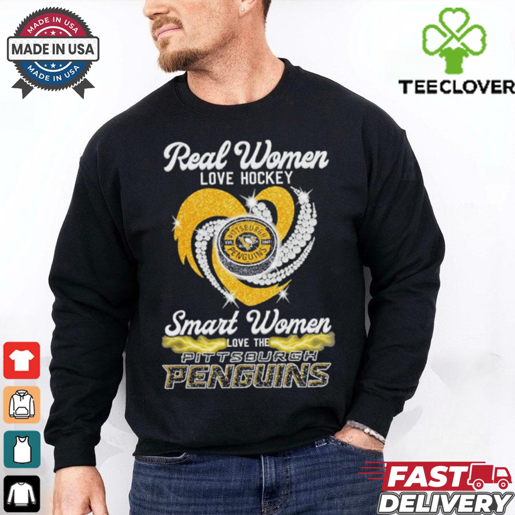 ()Real Women Love Hockey Smart Women Love The Pittsburgh Penguins Heart Diamond 2024 shirt hoodie, tank top, sweater and long sleeve t-shirt: best style for you