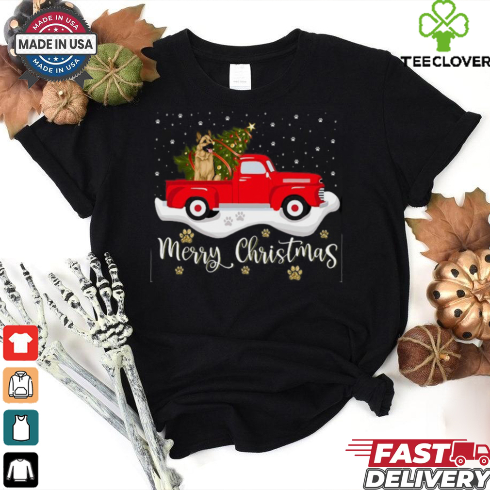 If you choose to wash your bras in the Red Truck Merry Christmas Tree German Shepherd Christmas German Shepherd T Shirt machine, be sure to wash them in mesh bags to prevent the cups from getting crushed in the wash. To dry your bras, simply lay them flat to dry with the cups facing up or hang them to dry or drape them over a hanger so the center gore lies on the hanger.To buy a proper bra for yourself you first need to know the size of your breasts, for this get hold of a measuring tape, a pen/pencil and a piece of paper. Now measure the circumference of your body just beneath your breasts and note it down, this size is your band size. Take another measurement around the fullest part of your breasts(refer to the picture below), this is required for calculating your cup size.