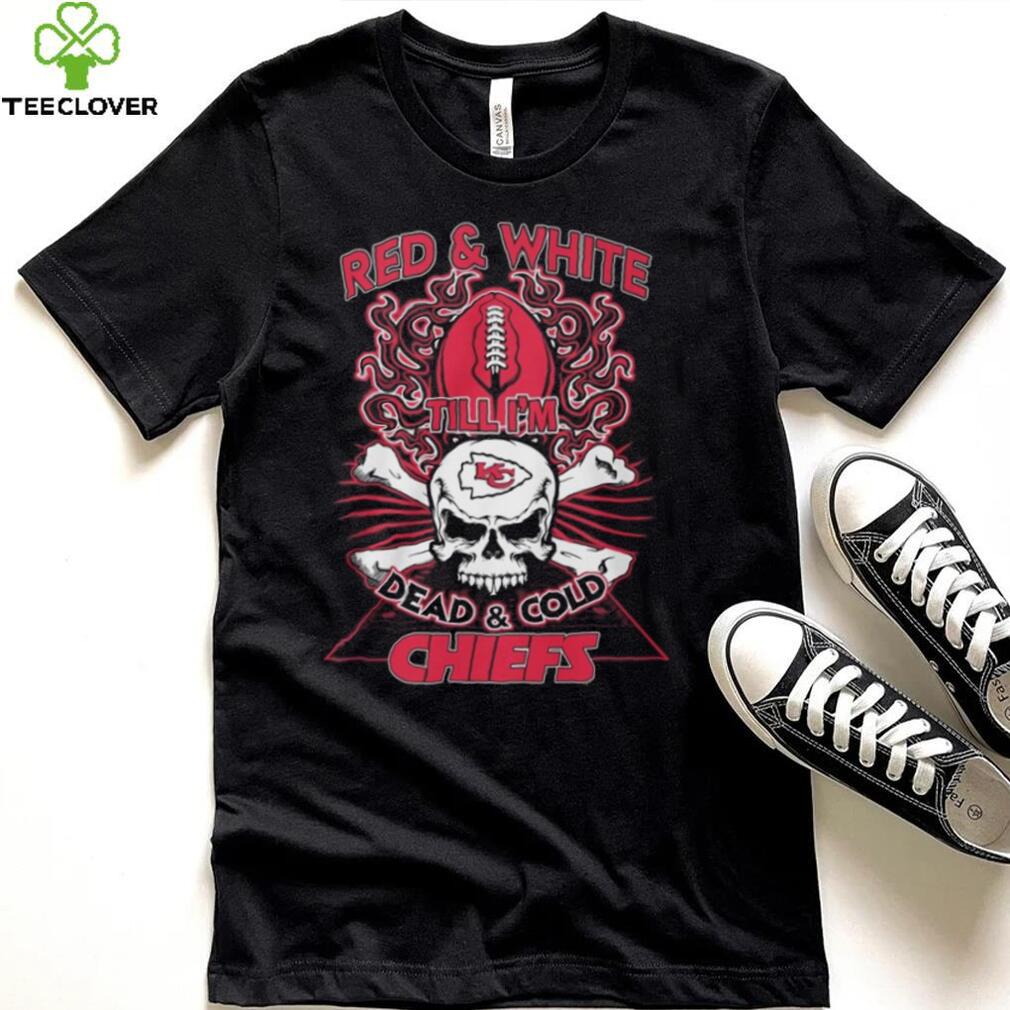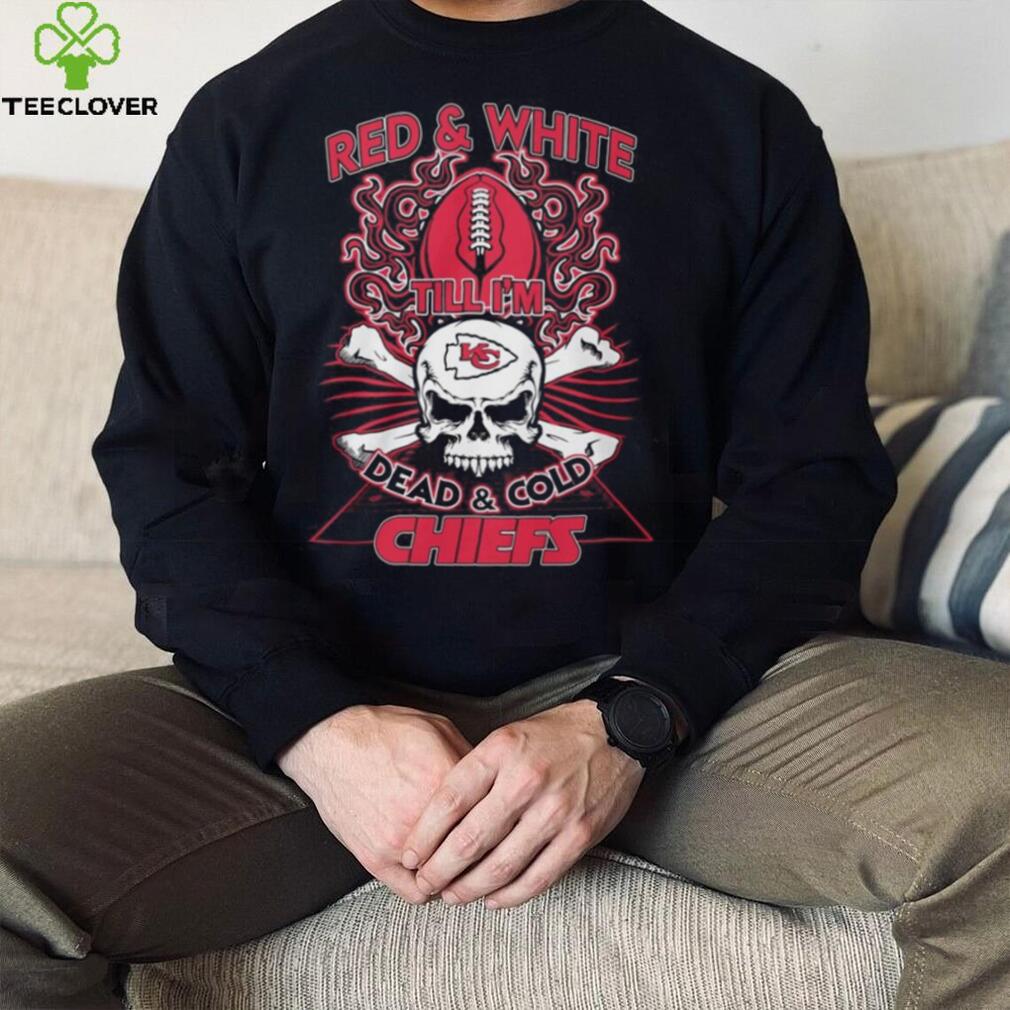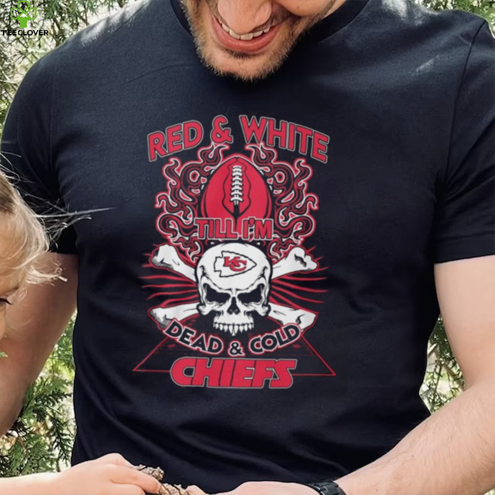 (Red & White Till I’m Dead & Cold Chiefs T Shirt, sweater)Categories Holidays, Fathers Day, Mothers Day of this men’s, women’s t-shirt, hoodie, sweatshirt and plus size, all sizes from Dad, Family, Liberals. This t-shirt has all kinds of colors black, white, navy, red that is very suitable for trending or holidays for Red & White Till I’m Dead & Cold Chiefs T Shirt