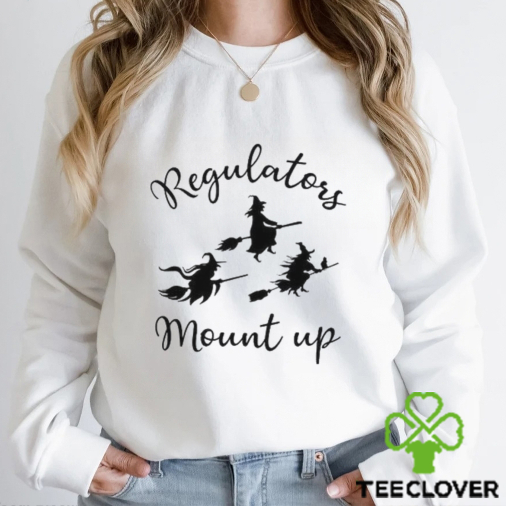 Many of the Regulators Mount Up T Shirt Fall Shirt Ladies Tee Hoodie Christmas customs were inherited from older Winter Solstice celebrationsβincluding greenery indoors, feasting and gift-giving. It seems quite likely that the celebration of the birth of Jesus was scheduled at that time in order to piggy-back on existing holiday observances. Halloween is very directly descended from the old Celtic feast of Samhain, when the dead return to visit the living. Modern Pagans observe this and Beltane (May Day) as their major holidays, the Feast of the Dead and the Feast of the Living on opposite sides of the Wheel of the Year. Easterβs Pagan connections are suggested by its English name, Eostara being a Pagan Germanic Goddess associated with the Spring Equinox. The bunnies and eggs probably go back to Pagan times as well.